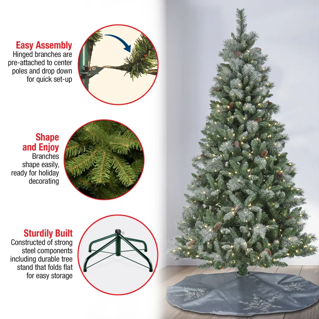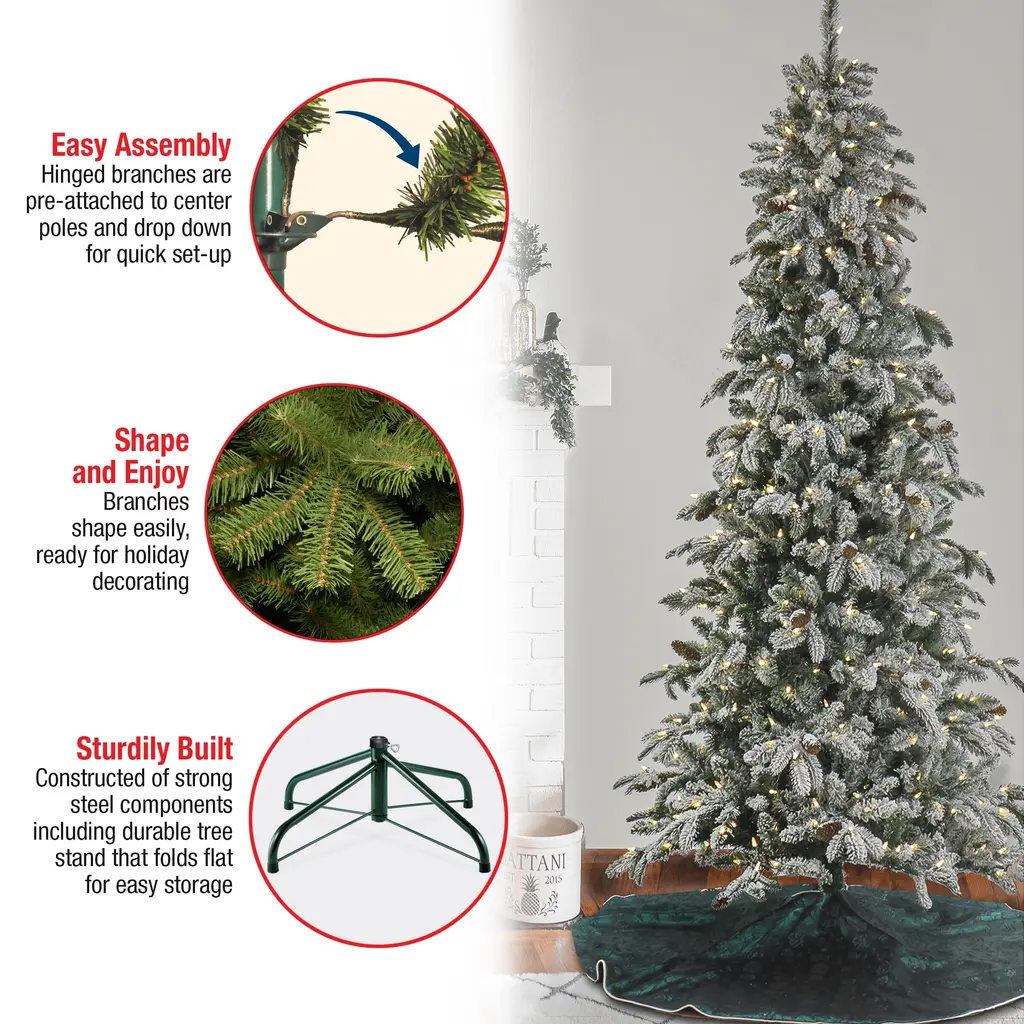 8Ft Snow Flocked Artificial Christmas Tree W/ 1651 Glitter & Pvc Tips - 57"x96" - Green - 7 Foot