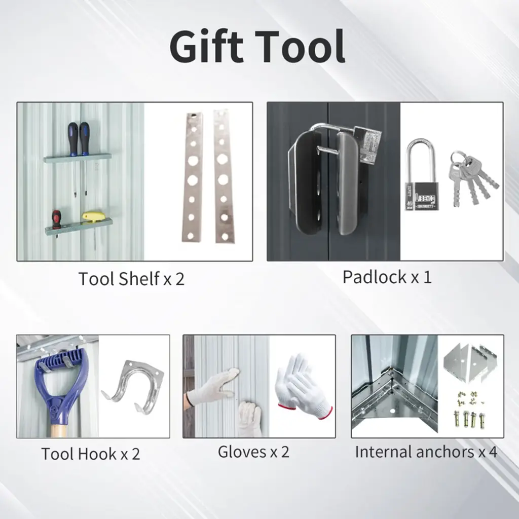8x4 Storage Shed: This 8x4 FT storage shed suitable for outside use with lots of storage space, you can store your lawn mower, bicycle, and garden tools for your daily outdoor storage needs.