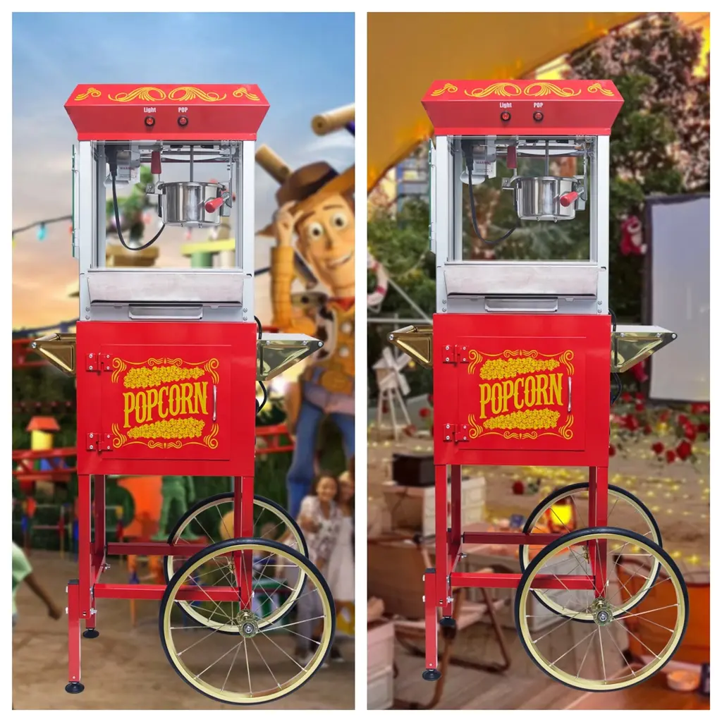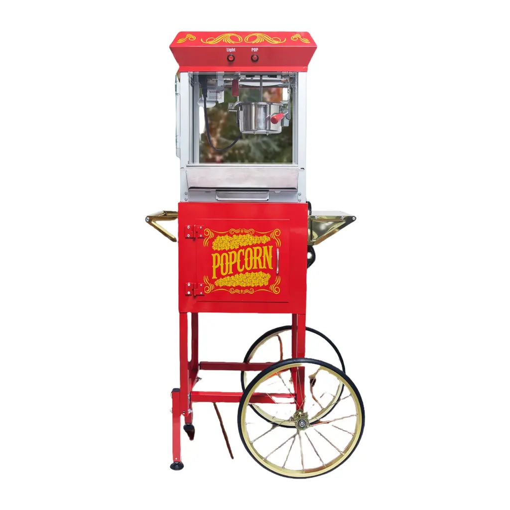 8Oz Popcorn Machine With Cart, Stainless Kettle And Warming Deck - Red