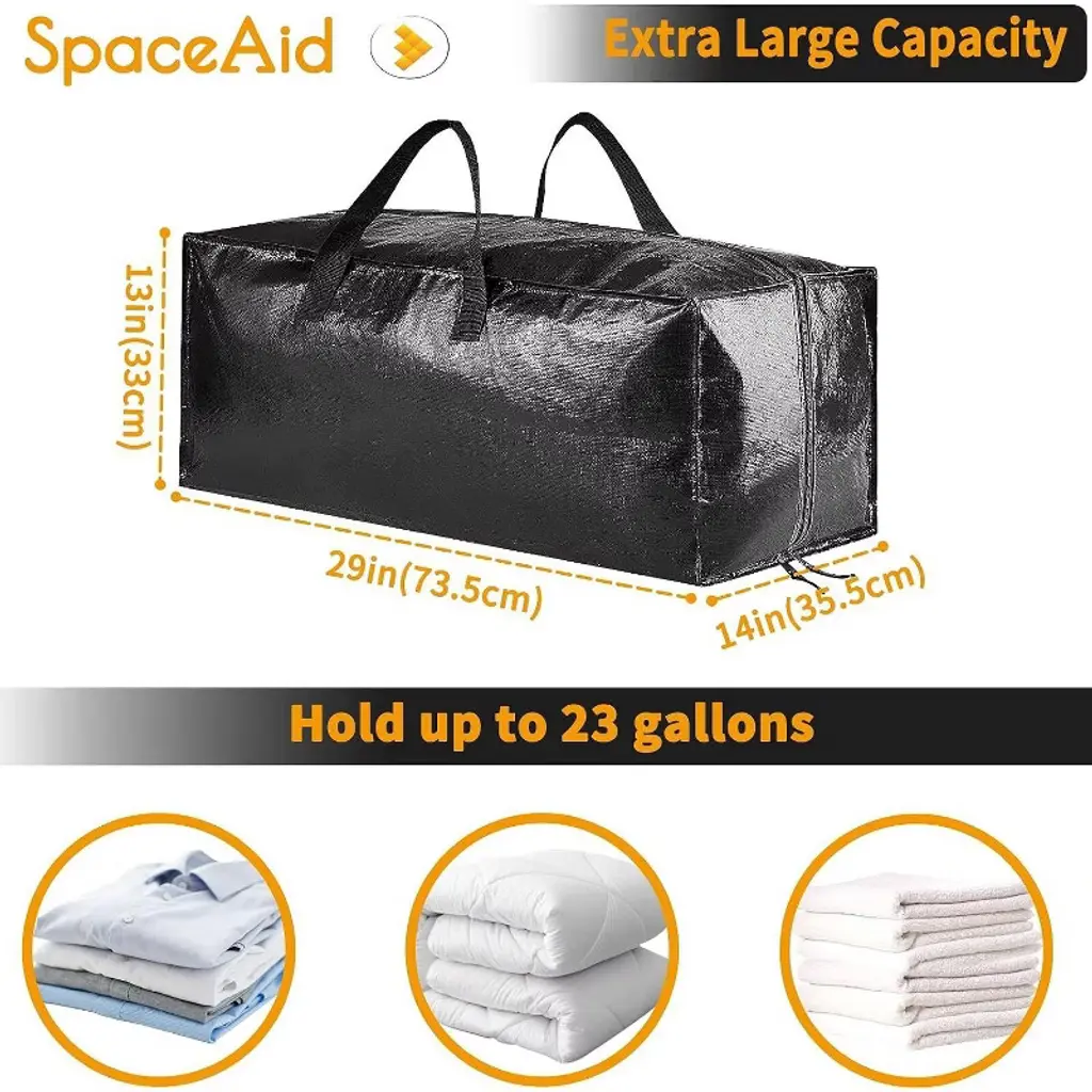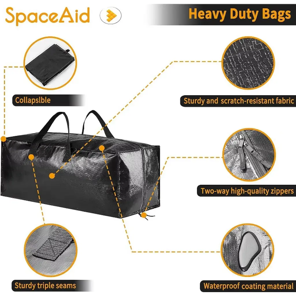 The SpaceAid Heavy Duty Moving Bags are the perfect solution for moving, storage, or organizing your belongings. This 8-pack set of extra-large capacity bags is made from high-strength, durable materials, ensuring robust load-bearing and longevity. Each bag features strong handles and comfortable backpack straps for easy carrying and transport. Equipped with a powerful zipper, these bags securely lock in your items, preventing loss or damage. Compared to traditional cardboard boxes, these moving bags are more versatile, suitable for home moves, travel, storage, and car use. Their simple black design is both sleek and easy to clean, making them an ideal choice for organizing clutter and simplifying your moving tasks.