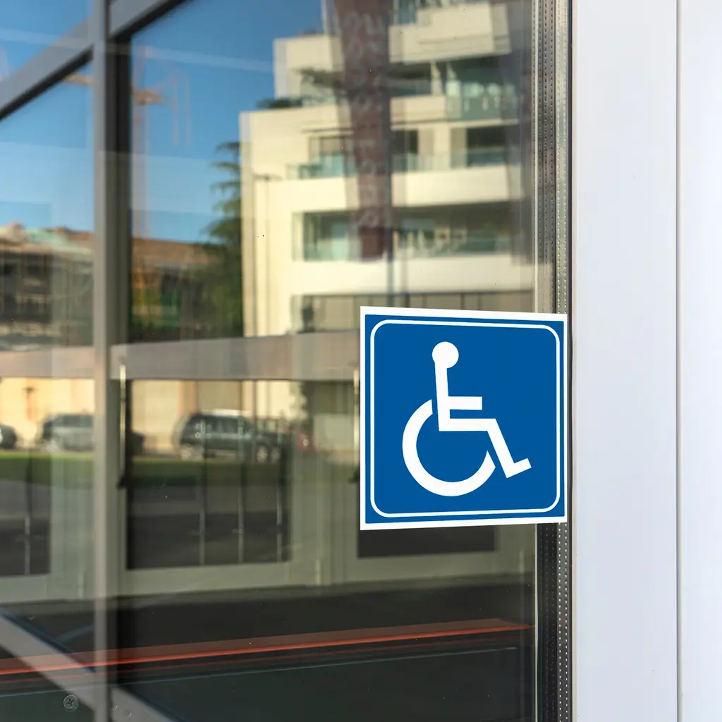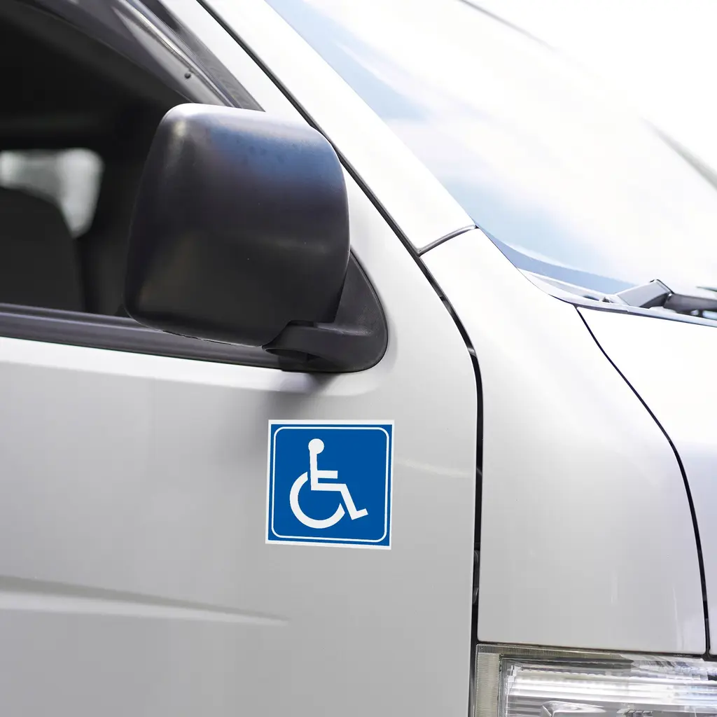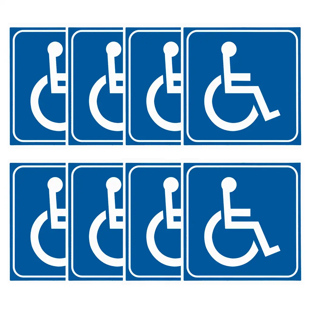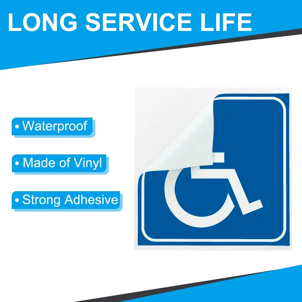 Sign stickers suitable for business, office, public places, car logos, etc. This is also an obstacle sign in the parking lot. Stickers can be placed in the bathroom or bathroom and can be modified for use by the disabled.Specification Material: VinylOverall Dimensions: 7.62 x 7.62cm / 3 x 3 inch (L*W)Package List: 8 x Handicap Sign StickersAdvantageSign stickers made with vinyl, waterproof, weatherproof, resistant against scratches and UV-resistant and won’t fade, for a long service life. Stickers also stretch and conform easily and are removed cleanly without adhesive residue.Instruction First, determine where the sign stickers is to be installed, just take off the paper backing and place the sticker on the wall. Works great on flat surfaces such as your window, wall, door.NOTE: Please thoroughly clean the substrate to remove any dust, grease, or silicone before applying the sticker.