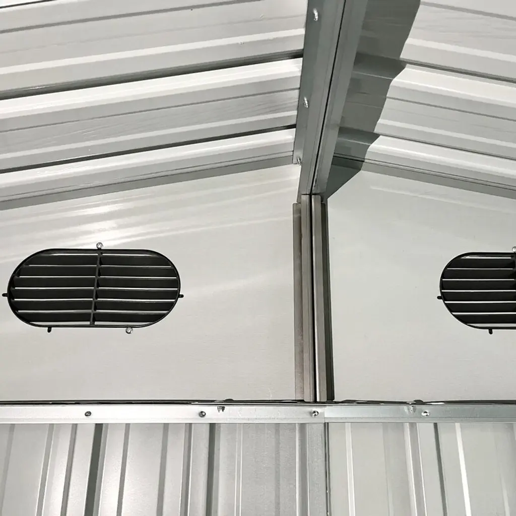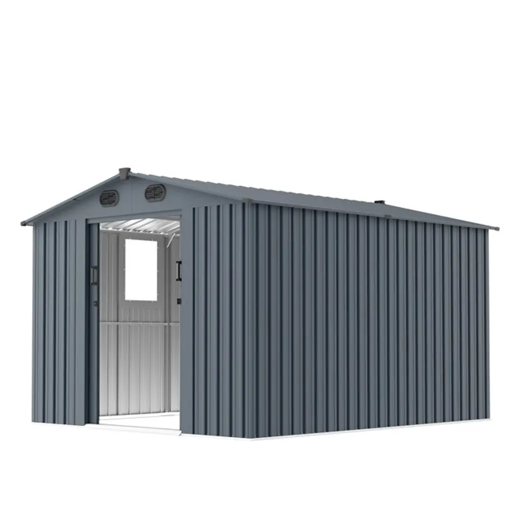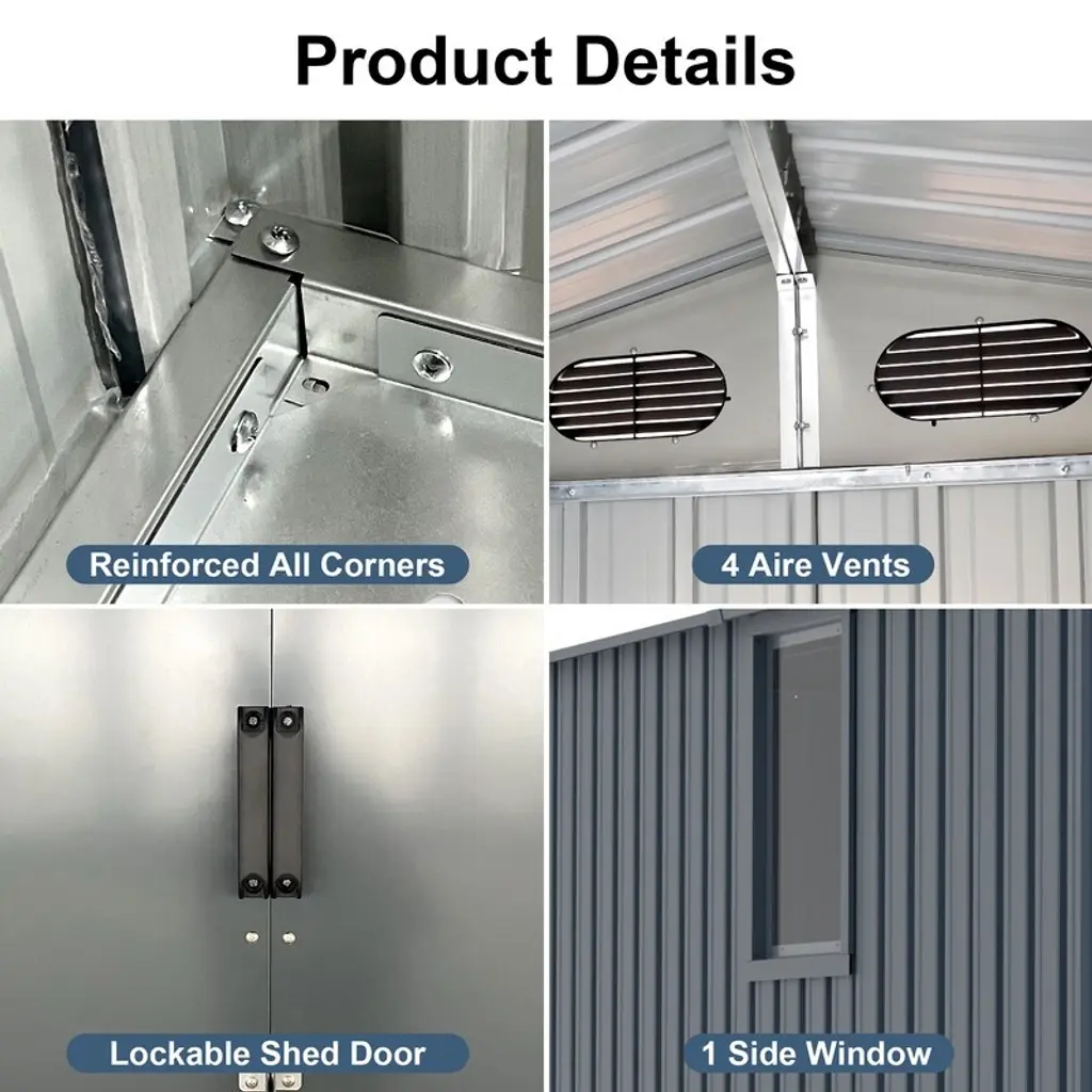 Product Features · Extra Spacious Storage: Compared to traditional sheds, this outdoor shed offers a larger area for storage, allowing you to accommodate all your belongings conveniently. Whether you need it for tools, gardening equipment, or other items, this shed is a great choice.· Premium Durable Material: Constructed from thickened galvanized metal, this shed is both waterproof and UV-resistant. Its sturdy material ensures all-weather use, even in harsh conditions.· Upgraded Frame Structure: The shed features an improved frame structure, making installation easier and enhancing overall stability. It's perfect for keeping your backyard organized as an outdoor tool shed. Plus, the protective film prevents scratches.· Practical Design: The shed's roof has double side slope grooves, allowing rainwater to flow off quickly and protecting your stored items. It includes a window, 4 built-in vents, and lockable doors for better air circulation and comfort during hot summers.· Safety and Versatility: The pitched roof prevents rainwater accumulation, and the door lock ensures security. Additionally, this shed serves multiple purposes—it can be used as a parking shed for bicycles, a tool shed for handymen, a trash room, or even a cozy pet house for furry friends.Assembled Length (in.): 94.49Assembled Width (in.): 118.11Assembled Height (in.): 72.83Weight (lbs.): 205.00Notes:Assembly RequiredThis product will ship to you in multiple boxes.Disclaimers & Disclosures:Contact US:After-sales Email Address: dhalcomb@doorise.comIf the item comes with any defect, damage(include damaged in transit) or missing partsand, please contact us with detailed images for free replacement or refund.