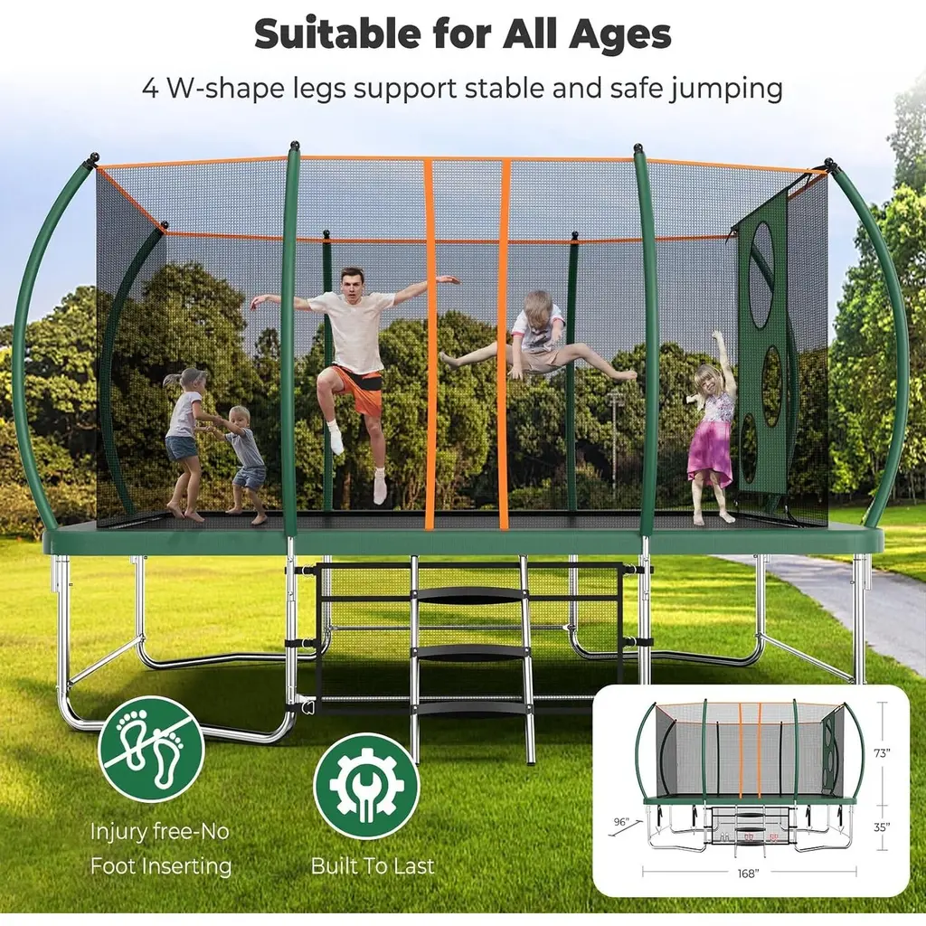 8X14 Ft Rectangle Trampoline For Kids And Adults, Outdoor Trampoline With Stakes - Green