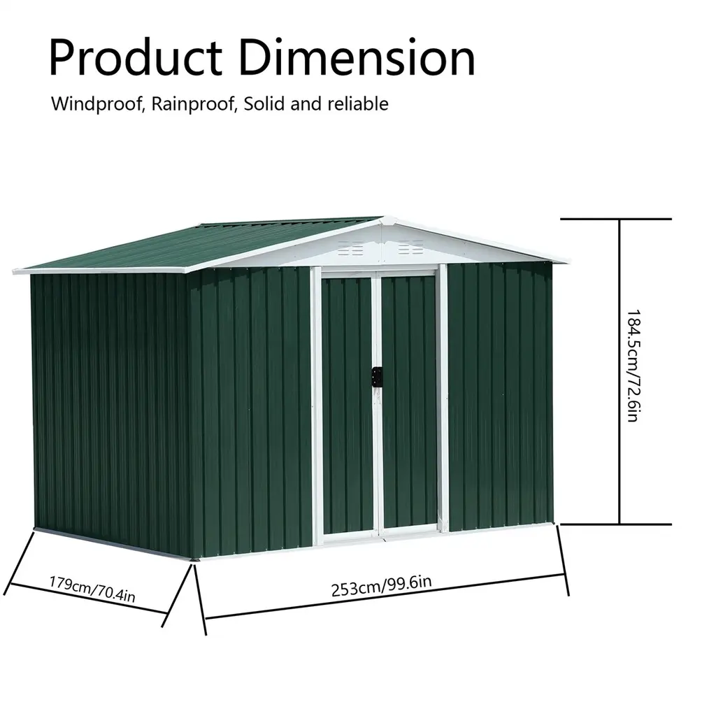 8X6 Feet Outdoor Garden Shed Apex Roof With Aluminum Alloy Frame - Green