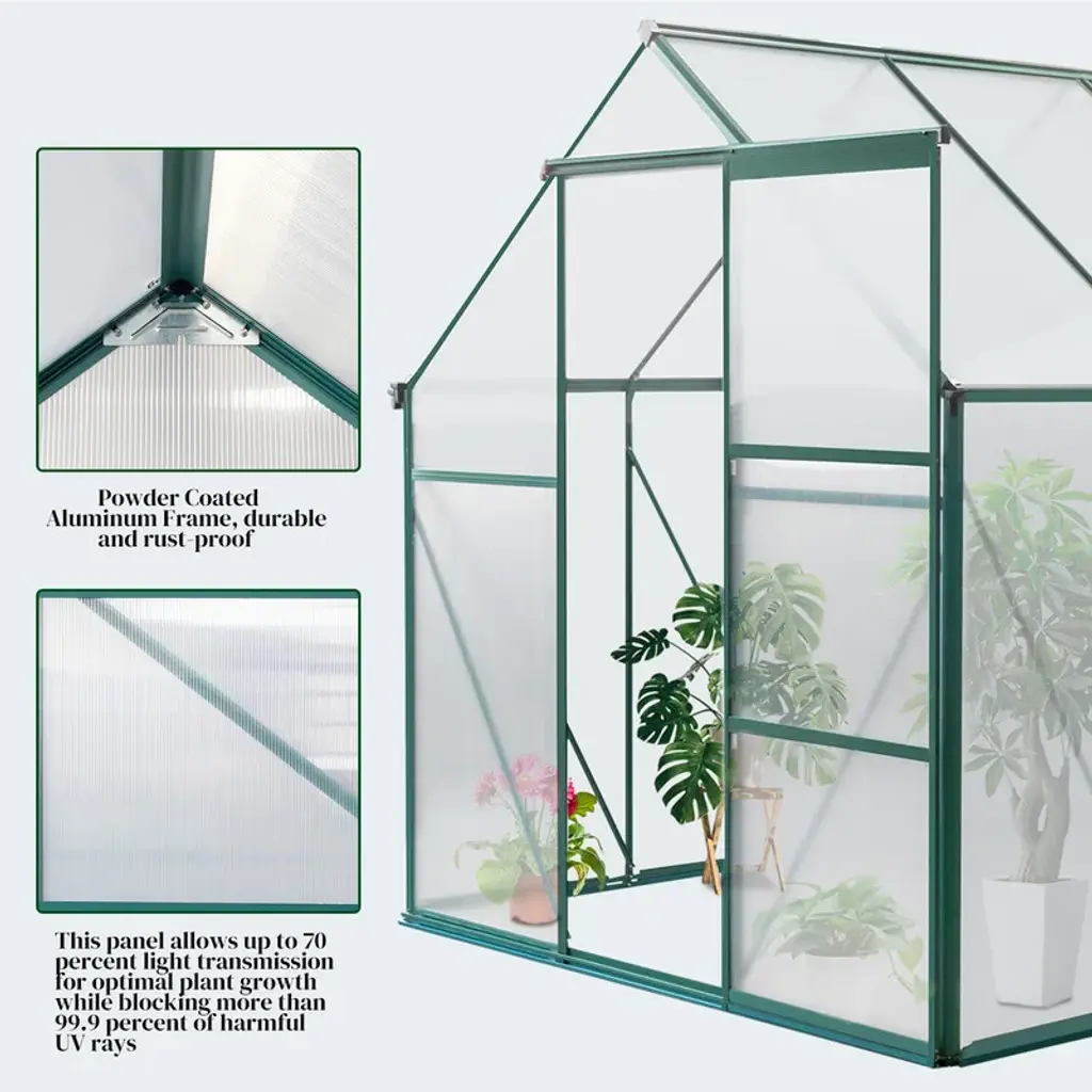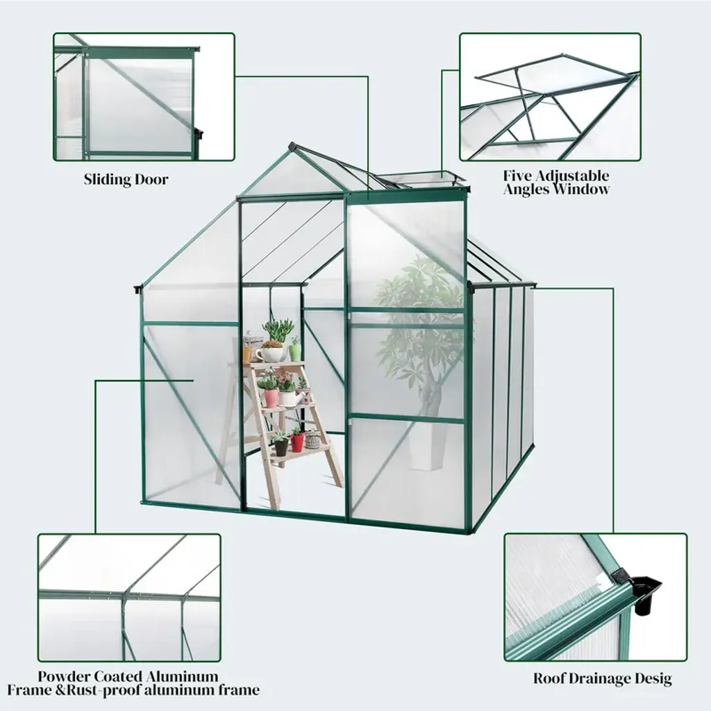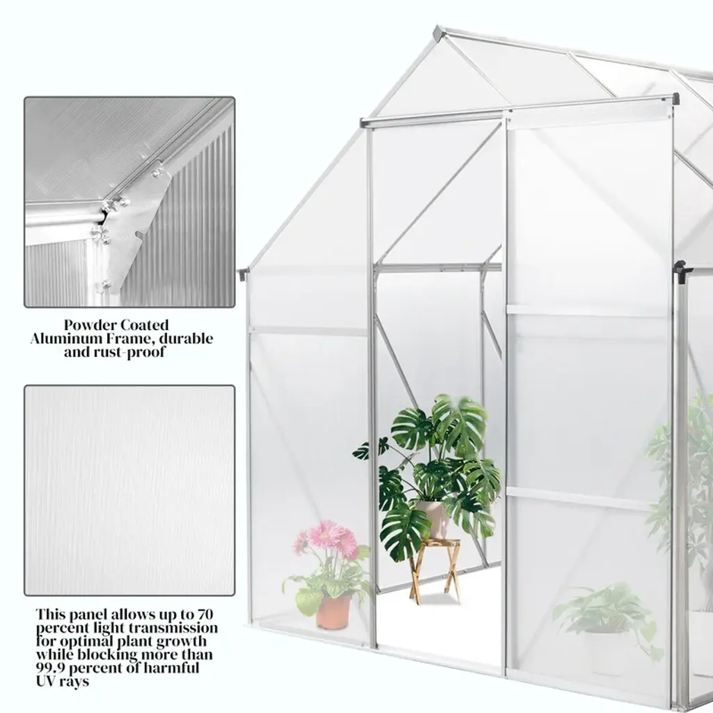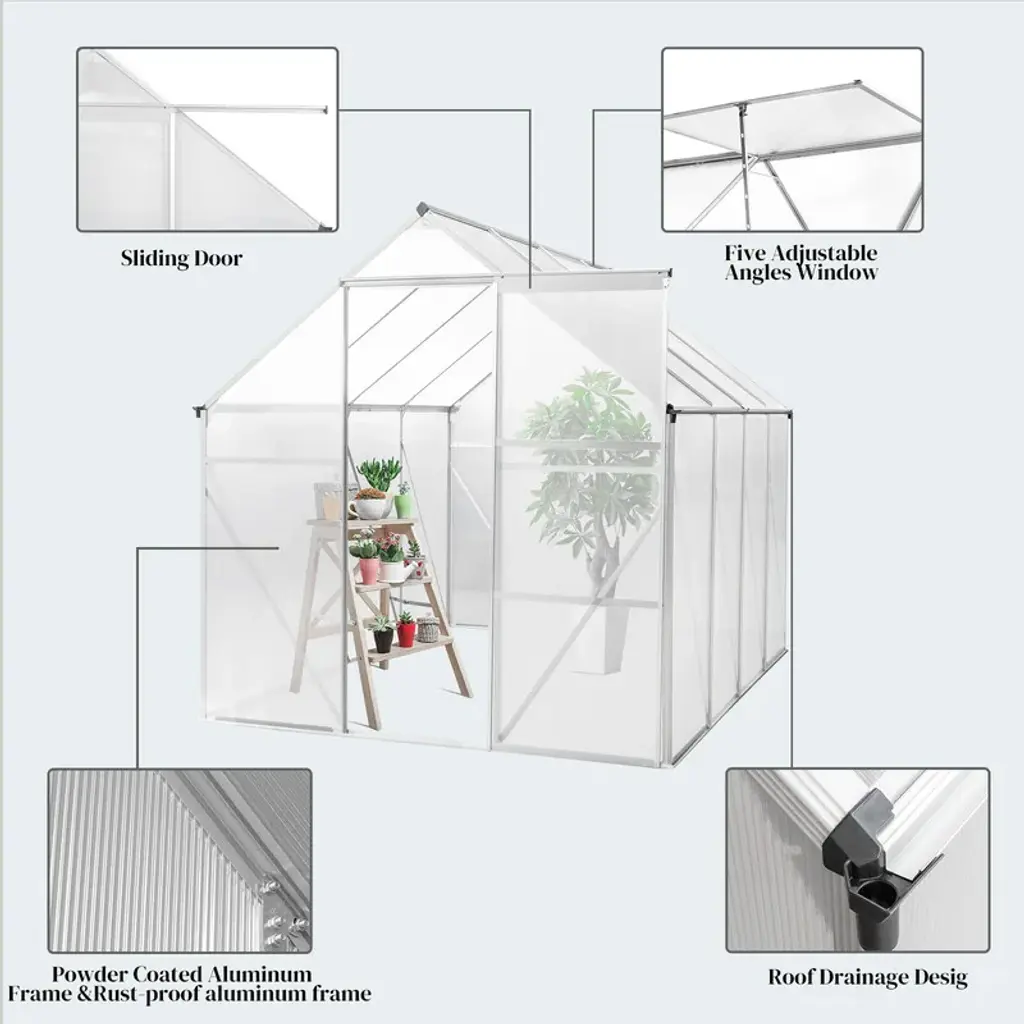 8X6 Ft Walk-In Greenhouse With Sliding Door And Vent Window Grey Frame - Grey Frame