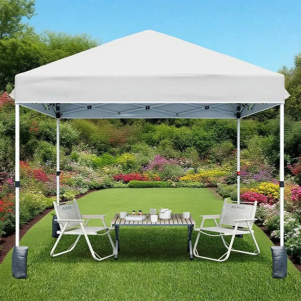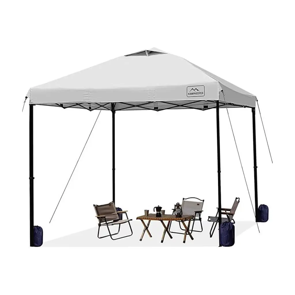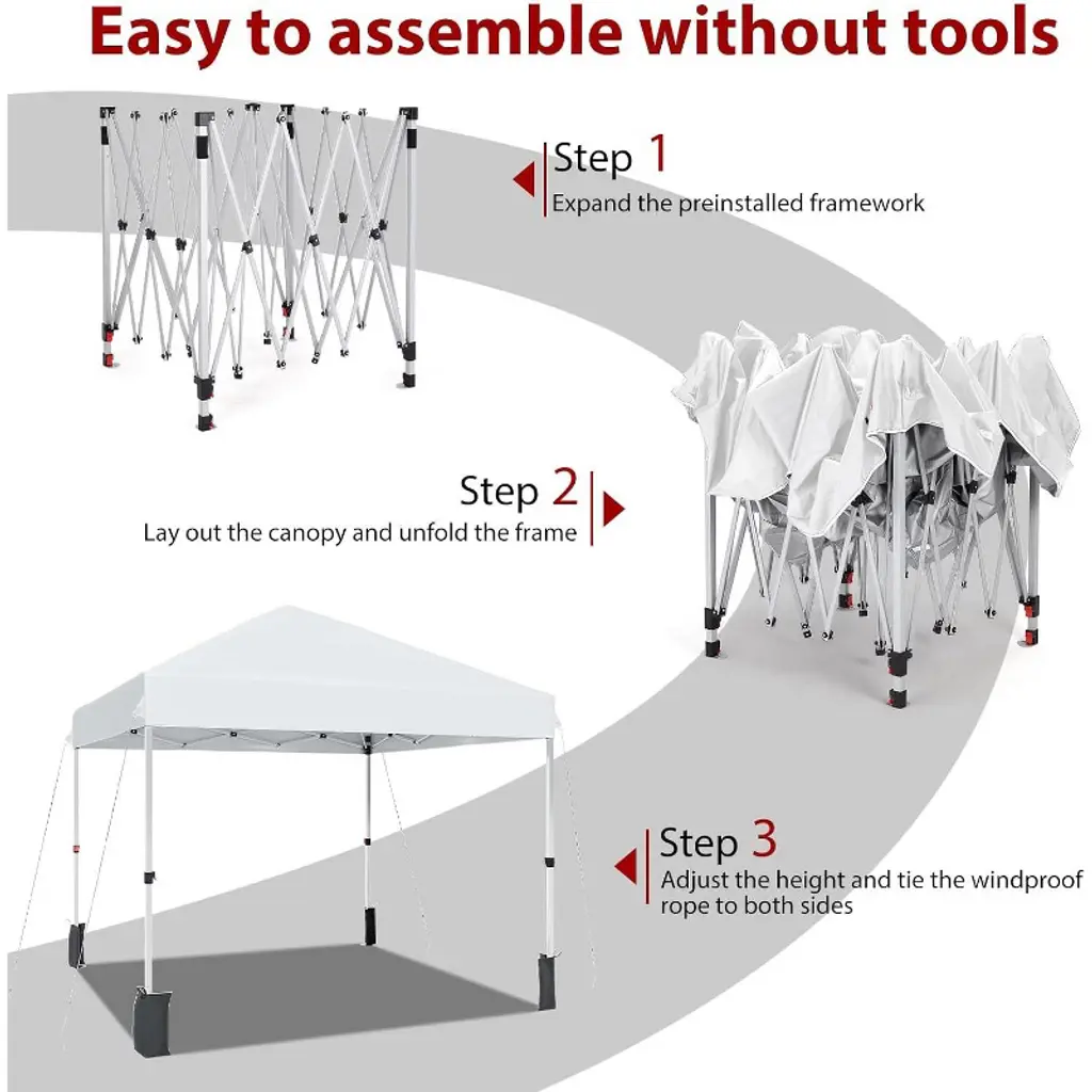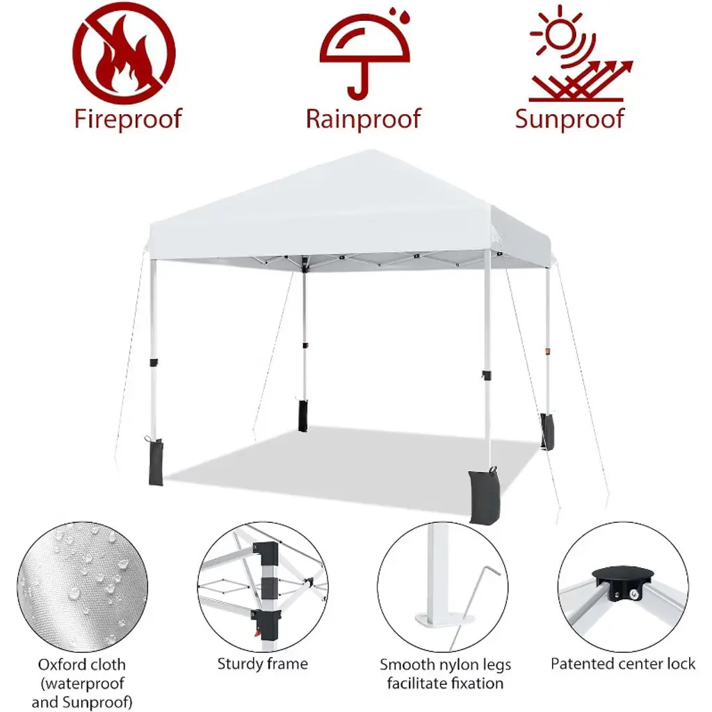 8X8ft Pop Up Canopy, 3 Height Settings, Folding Gazebo Shelter With Waterproof Cover & Wheeled Bag For Outdoor Events, Camping & Parties, White