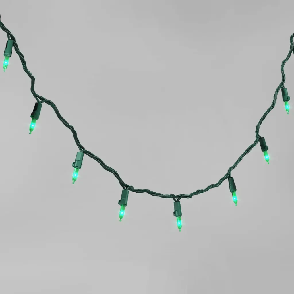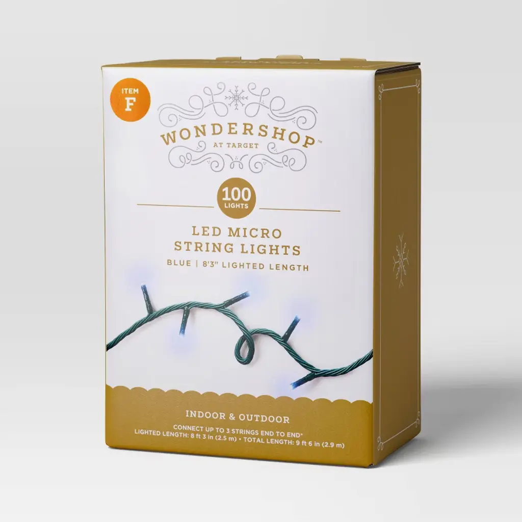 Add a cool touch of radiance to your decor with these LED Micro Christmas String Lights from Wondershop™. Featuring a dark green plastic cord strung with 100 small, micro LED bulbs, these decorative string lights add a magical touch to both indoor and outdoor spaces. Powered by electricity, these lights connect end to end — up to three sets — and feature nine settings for a personalized holiday glow. Transform your living or dining room, brighten your outdoor decor, or highlight your festive decorations by draping these lights along walls, trees, shelves or door arches.Welcome to the Wondershop™.