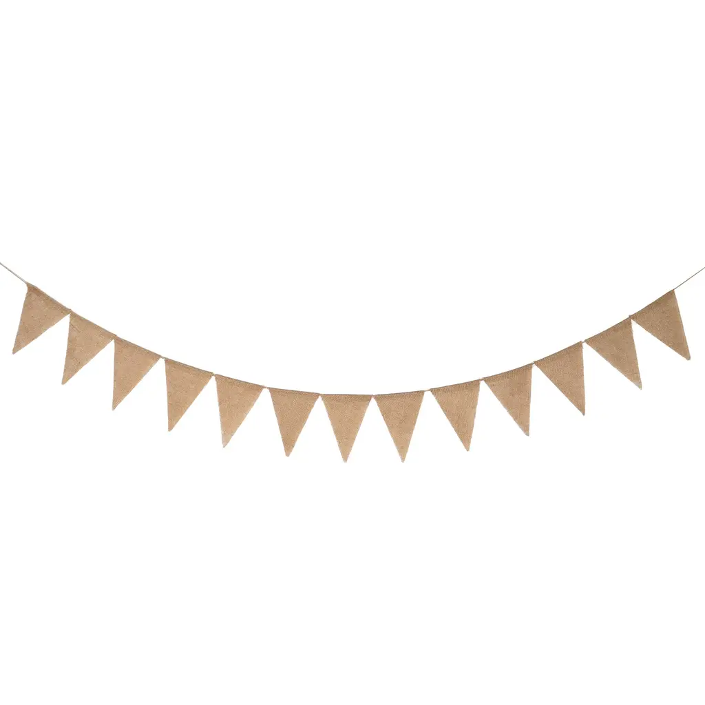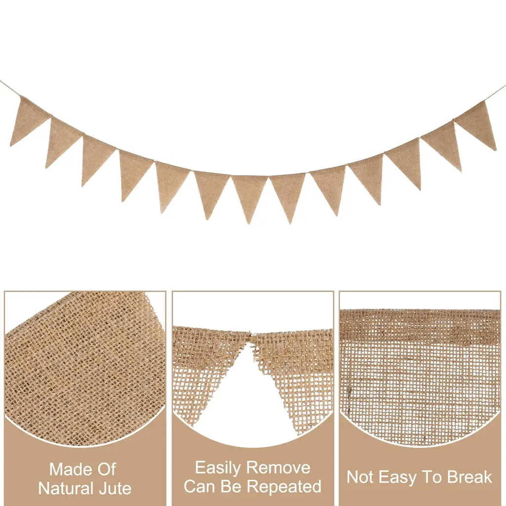This burlap banner is mainly used for party decoration, you can hang these decorative triangle flag on the wall, window, door or shelf to add a different atmosphere to your party, mainly used for birthdays, weddings, Christmas, Easter, masquerade, graduation party and other parties.SpecificationMaterial: Cotton and LinenColor: CreamLength of Rope: 9.8ft/300cmSize:5.1 x 6.7 inches/13 x 17cm(L*W)Package content: 13 x Cotton and Linen BannerAdvantageThis banner flag is made of natural jute, stiff but not smelly, not easy to break, and can be repeated. Adjustable length, easily remove extra flags or adjust the distance between them as you need. After the party is over,just take it off and fold it back. Perfect blank slate can use paint, fabric or cardboard to DIY any party themeInstructionThese triangle bunting flags are very easy to use, strong rope, so that you will not fall off easily even if you hang it outdoors, you can hang it on any decorative place you want.NOTEPlease confirm the length before you buy.