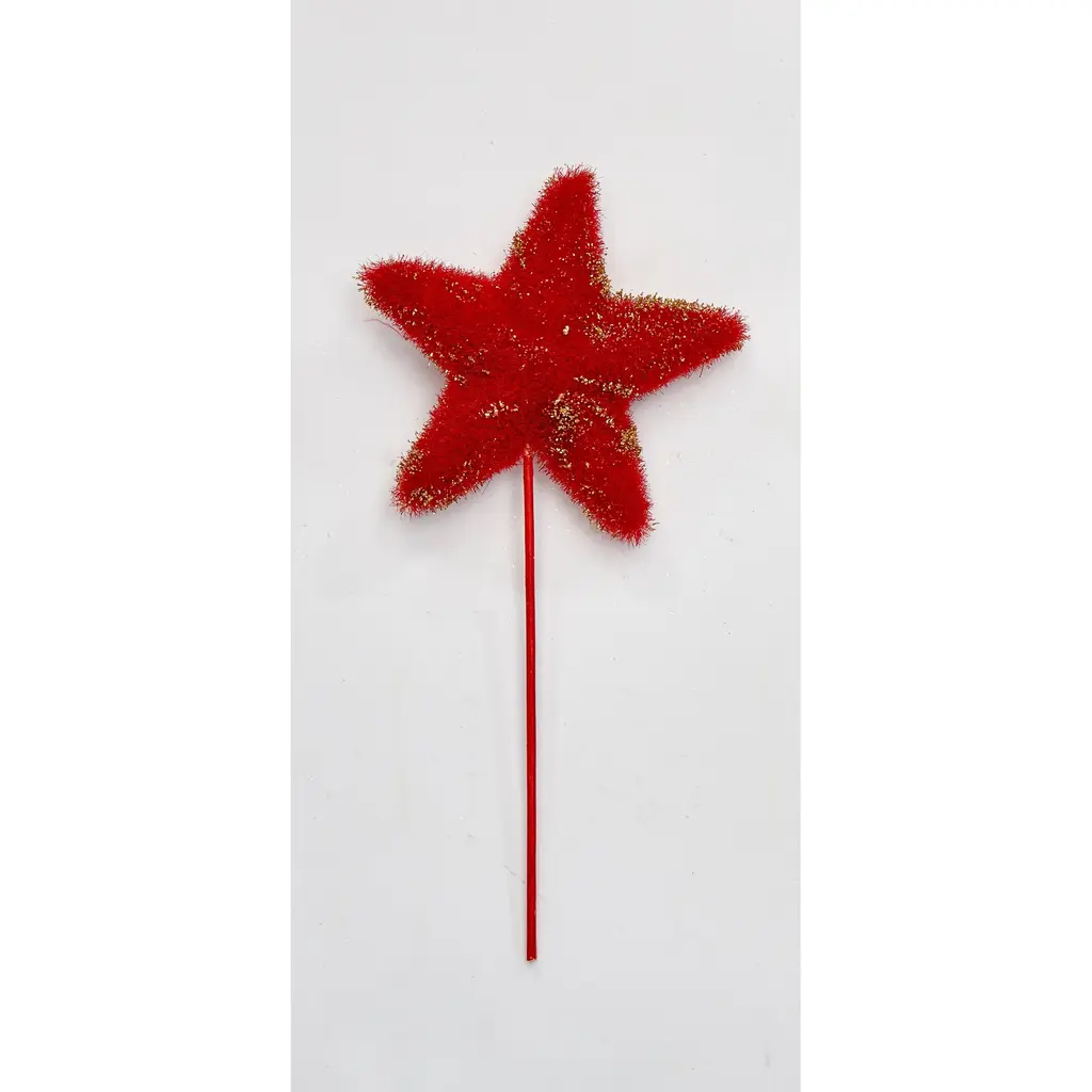 Add a pretty touch to your holiday arrangements with this feather tree on a wood stick. The tree is made of bright red real feathers detailed with a start on top. Perfect addition to any floral holiday decoration.