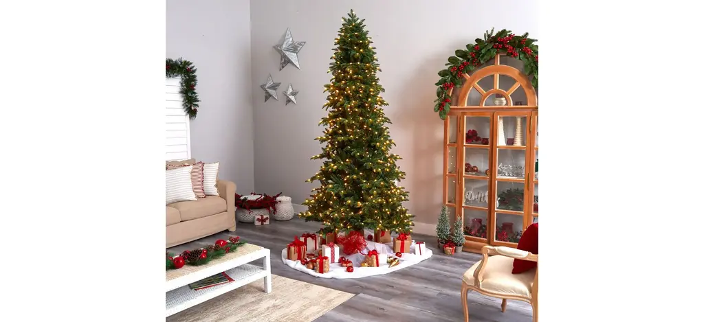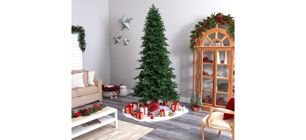 Create a traditional holiday scene in your home or office with the help of the 9' South Carolina Fir Artificial Tree! Completely maintenance-free, this realistic looking fake Christmas tree boasts a tight silhouette of seasonal evergreens.