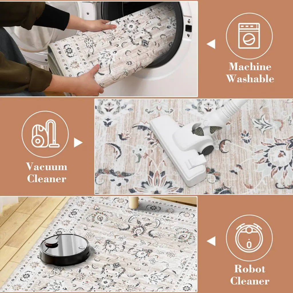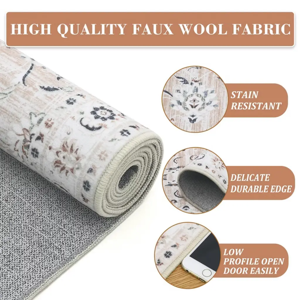 Durable Edges: This rug with durable edges can prolong its service time and be kept simply.Not Hide Dirt: The rug with low pair height provides a clean and safe environment, the hidden dirt in this rug can be found and cleaned simply.Kids Pets Friendly: Features low pile height, this rug makes hairs and pet dander easy to spot and clean, prevents children and pets from accidental ingestion, children and pets can play freely on it.Ultra Soft Surface: This rug crafted from imitation , it offers relaxation whether working, reading or resting, maintains a soft and comfortable feel underfoot.Non-slip Backing: Features a non-slip backing for secure placement and high durability for high traffic areas.