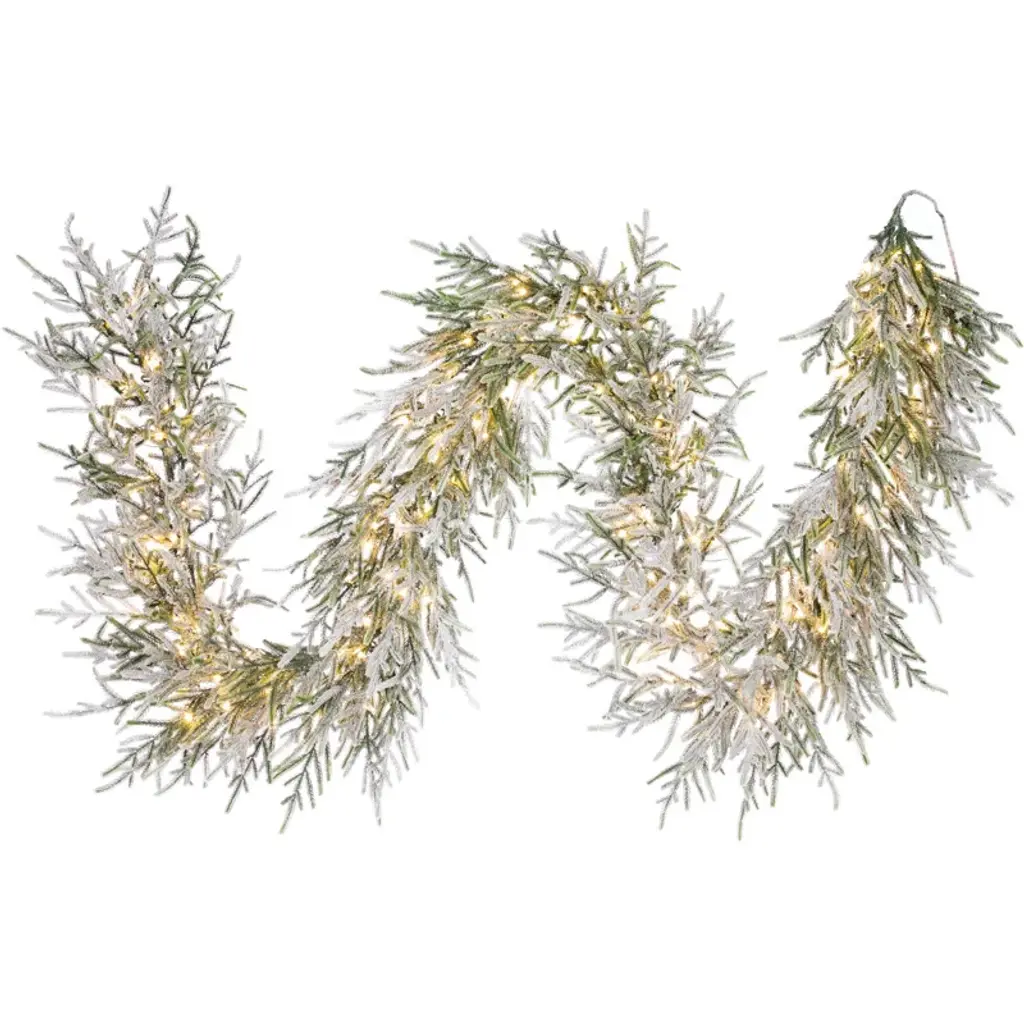 9'' X 16" Snow Ridge Garl LED100 WmWhtVickerman 9'' Snow Ridge Artificial Christmas Garland, Warm White LED Lightslight Count: 100Light Color: Warm WhiteTips: 160Color: Flocked White on GreenProduct Dimensions (W x D x h): 16 x 108 x 16
