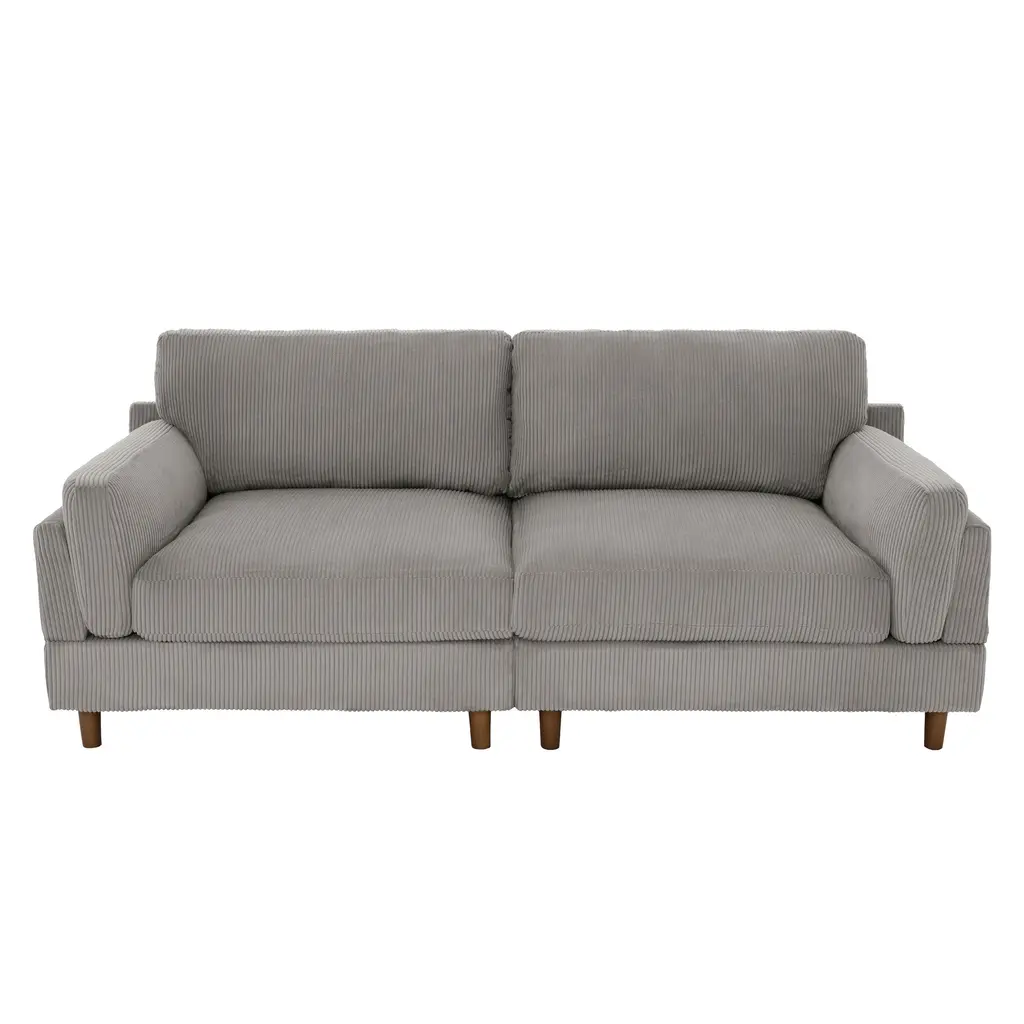 90" Oversized Corduroy Living Room Sofa With Reversible Cushions - Light Grey