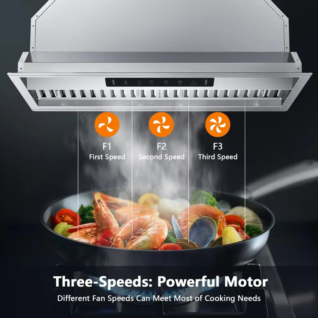 Transform your kitchen with this high-efficiency range hood, engineered to deliver powerful suction, quiet operation, and easy-to-use features for an enhanced cooking experience. Built to capture smoke, grease, and odors, it helps maintain a fresh and clean kitchen environment while improving your cooking atmosphere. Whether you're searing, simmering, or boiling, this range hood ensures your kitchen stays comfortable and free from unwanted odors.