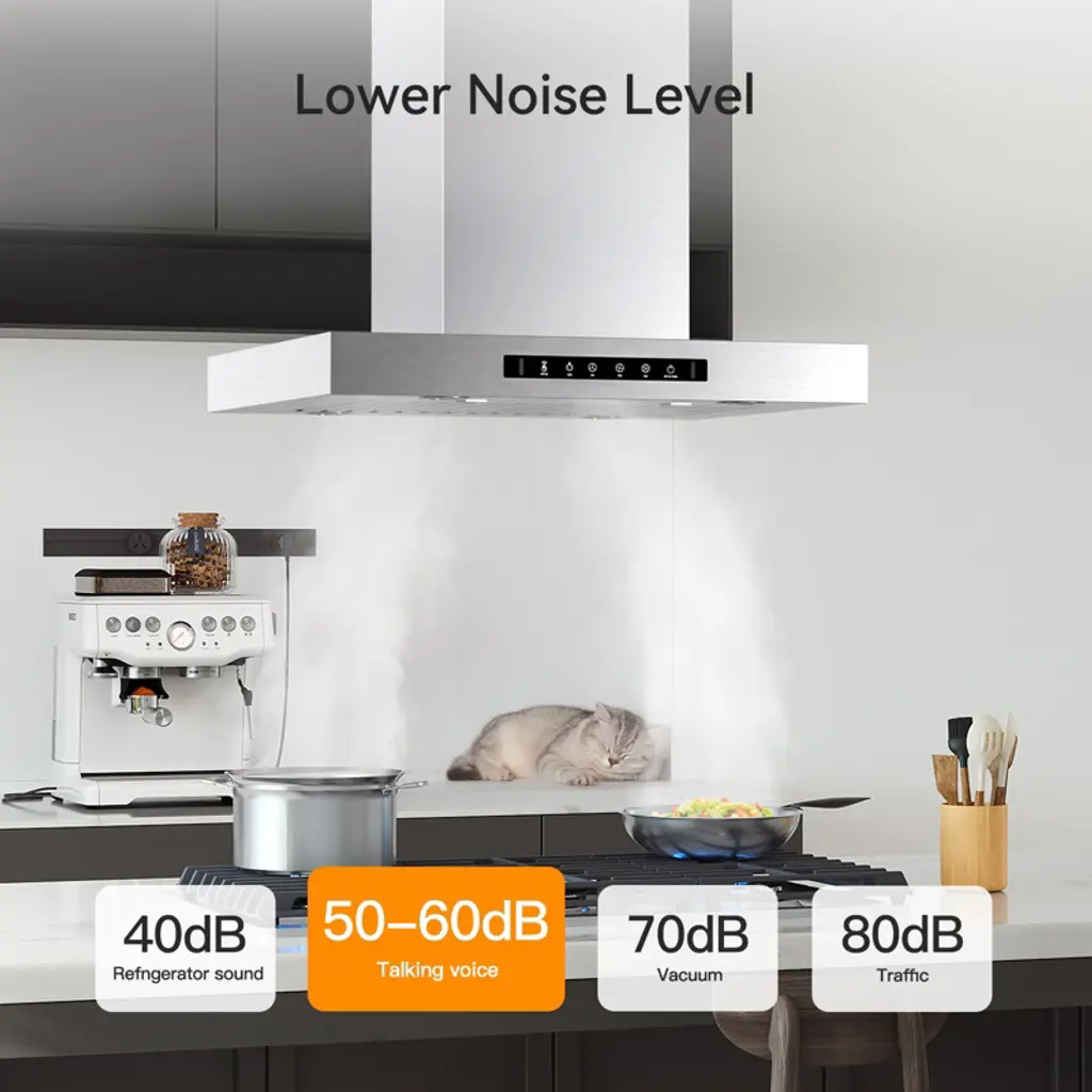 Transform your kitchen with this high-efficiency range hood, engineered to deliver powerful suction, quiet operation, and easy-to-use features for an enhanced cooking experience. Built to capture smoke, grease, and odors, it helps maintain a fresh and clean kitchen environment while improving your cooking atmosphere. Whether you're searing, simmering, or boiling, this range hood ensures your kitchen stays comfortable and free from unwanted odors.