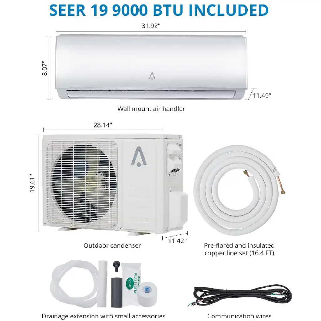 9000 BTU Mini Split AC Compatible with Alexa, 20 SEER2 208V/230V Wifi Enabled Ductless AC Cool Up to 450 Sq. Ft, 16 Ft Installation Kits