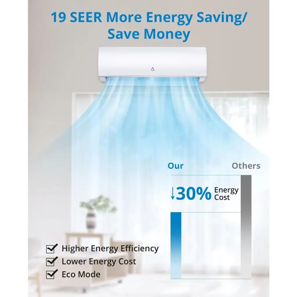 9000 Btu Mini Split Ac, 20 Seer2 208v/230v Wifi Enabled Ductless Ac Cool Up To 450 Sq. Ft