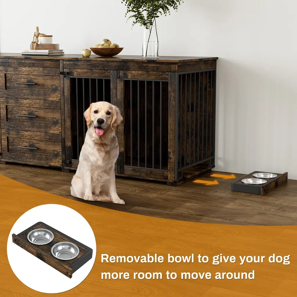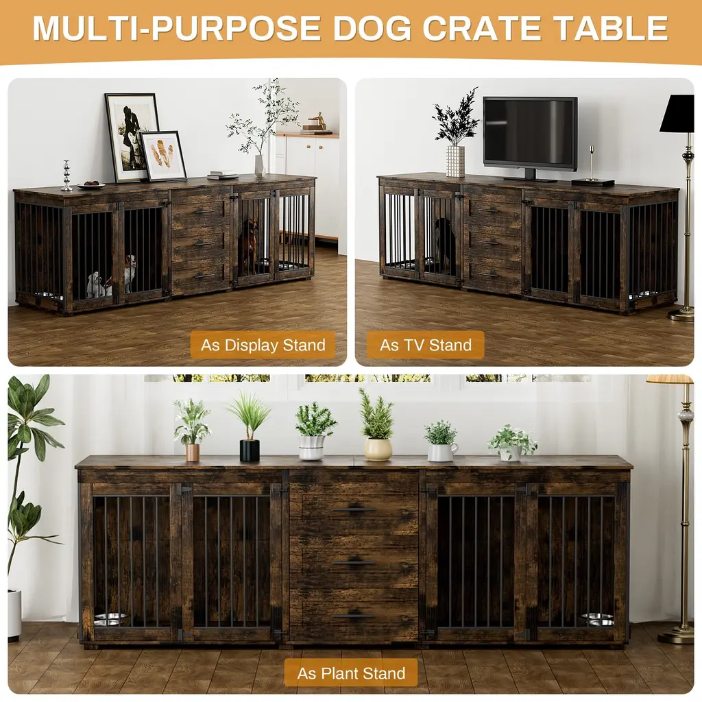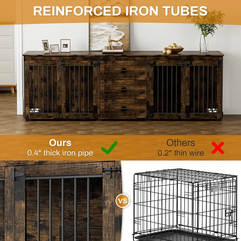 This multi-functional dog kennel is not only a safe and spacious retreat for your furry companion but also a beautiful piece of furniture that complements your home. Constructed with superior durability in mind, this dog crate furniture ensures your pet's comfort and security. The spacious interior allows them to stretch out, relax, and enjoy their own private space. The thoughtful design includes drawers, providing convenient storage for their toys, blankets, and other essentials.Features:Additions:Notes: