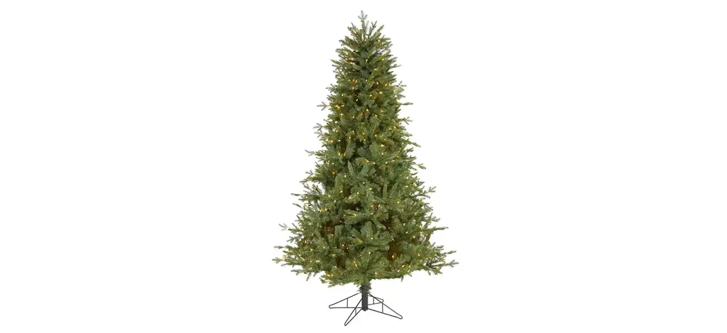 Evoke hints of a traditional Christmas setting with the help of this 9' pre-lit sierra spruce "natural look" artificial Christmas tree. Intricately designed to showcase an all-natural look in appearance, its robust silhouette is made up of 4443 easy-to-bend branch tips, perfect for showcasing all your favorite holiday ornaments. Arriving pre-strung with 1000 clear LED lights to eliminate unsightly tangles and carefully stabilized on a metal stand, this impressive 9' artificial Christmas tree will undoubtedly be a great addition to holiday decor - year after year.