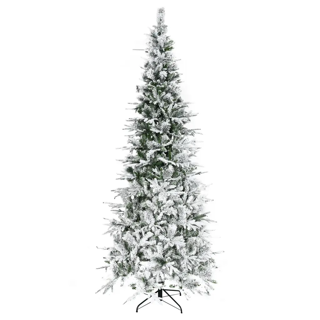 Product Features: Create a cozy holiday ambiance with this 9ft snow-flocked artificial Christmas tree, designed to capture the look and feel of a snowy pine. With 1159 realistic branch tips, this tree offers a lush, full-bodied appearance that's perfect for displaying ornaments and decorations. The flame-retardant material ensures safe use around fireplaces and in family settings. The auto-open branch design and included lightweight base make setup simple and storage effortless, offering a no-hassle solution for holiday decorating that can be enjoyed year after year.Specifications: Weight & Dimensions: Suitable Scenarios: This unlit Christmas tree's grand 9ft height and snow-flocked branches make it perfect for homes with high ceilings, festive office spaces, or holiday events. The tree's realistic look and simple setup make it an elegant, low-maintenance option for adding holiday charm to any space, especially near fireplaces or in cozy living rooms.