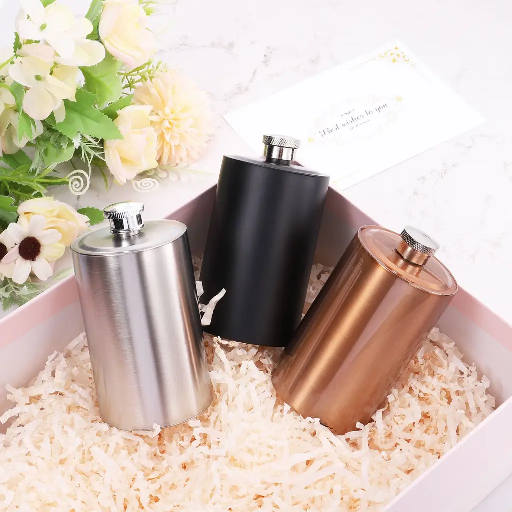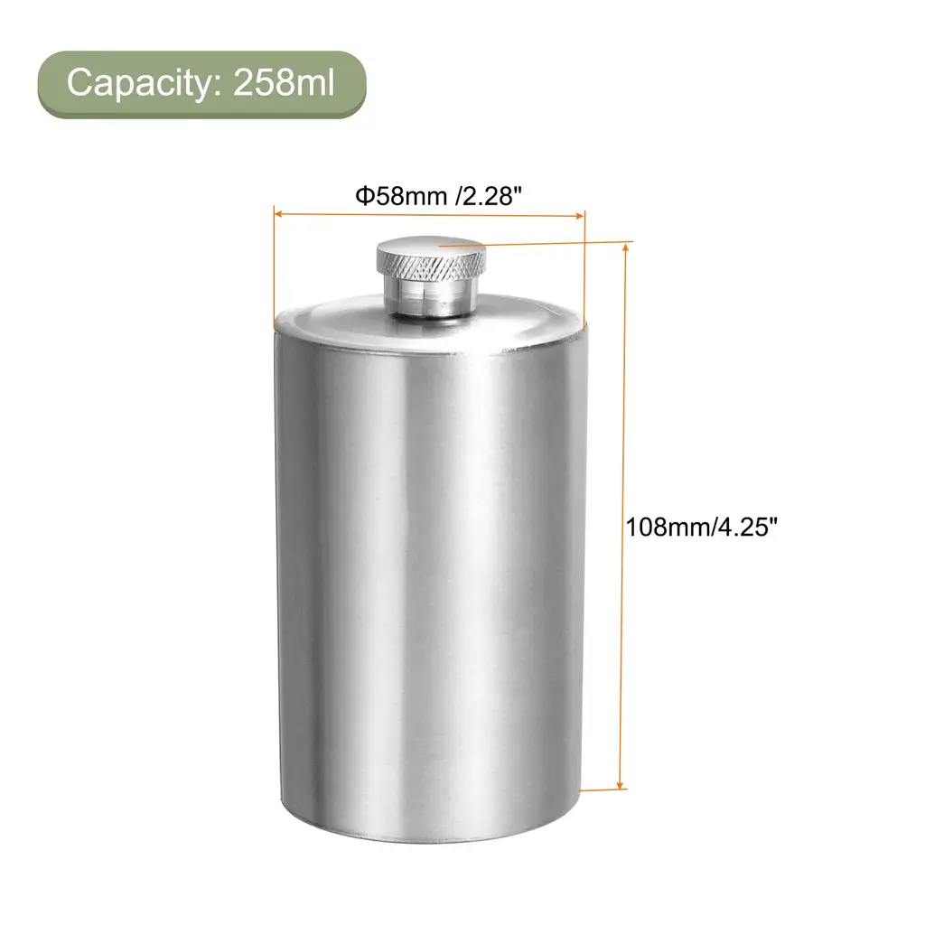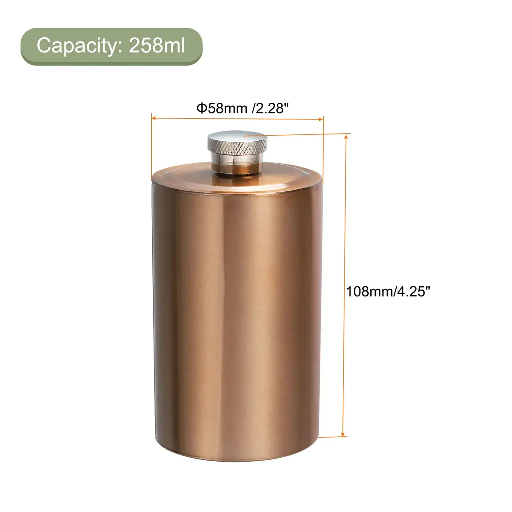 Description:Material - The hip flask is constructed from stainless steel material, with a plating surface finish for corrosion resistance, wear resistance, sturdy construction, not easy to rust and deform, and has long-lasting durability.Leak Proof - The cap of our hip flask is sealed tightly to ensure that wine or beverages will not leak out and be wasted. Furthermore, the cap features a hinged design which is connected to the flask, ensuring that they are not misplaced and lost.Easy to Carry - The hip flask is compact in size and lightweight, portable to carry out for outdoor activities, allowing it to easily fit into bags and not occupy much space. Store it anywhere, drink anytime and anywhere.Multifunctional Application - The portable hip flask can be brought while camping, fishing, picnic, boating, hiking and other outdoor or indoor activities to carry and store a small amount of liquor or other beverages.Warm Tips for First Use & Conservation - 1. Please rinse the flask inside with soap water and clean it up for the first time. 2. After using, please keep the flask always empty, clean and dry thoroughly when not used. 3. Better not to keep liquid in it for a long time.Specification:Material: Stainless SteelFinish: PlatingColor: GoldCapacity: 258mlOverall Size: 58mm x 108mm/2.28-inch x 4.25-inch(D*H)Package Content:1pcs x Hip Flask
