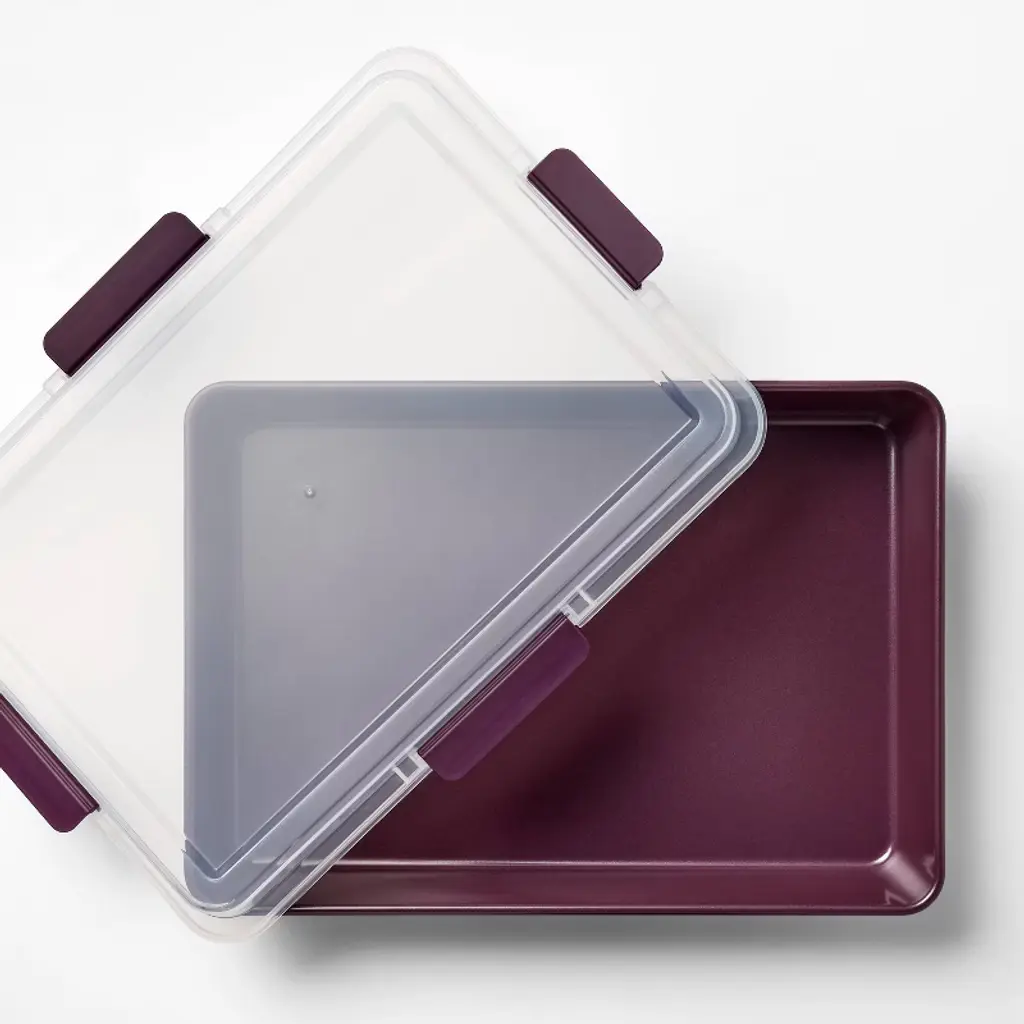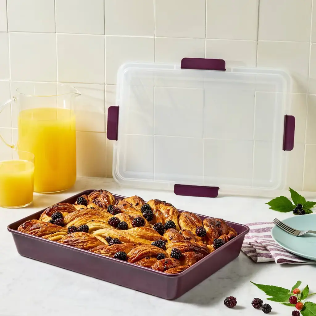 9"x13" Nonstick Aluminized Steel Cake Pan Set With Lid Dark Purple - Figmint™