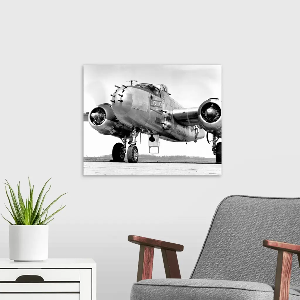 A B-25 Mitchell bomber, nicknamed the Sunday Punch, parked at the McGhee Tyson Airport, Tennessee.
