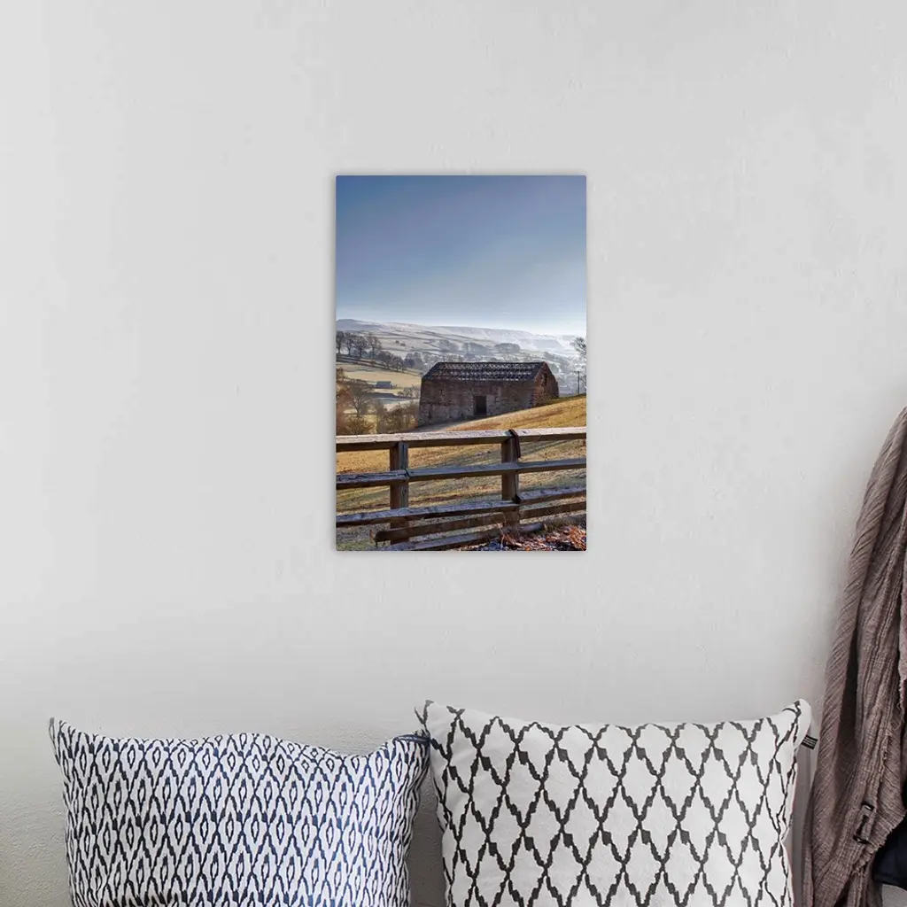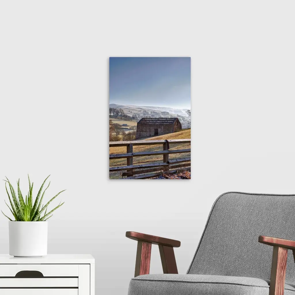 A Barn On A Hilly Landscape In The Fog; Yorkshire Dales, England wall art for home and office decor. Discover canvas art prints, photos, mural, big canvas art and framed wall art in GreatBigCanvas.com's varied collections.