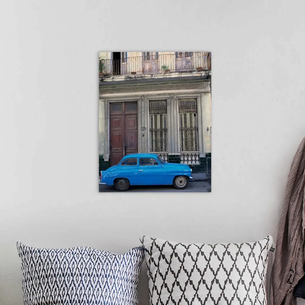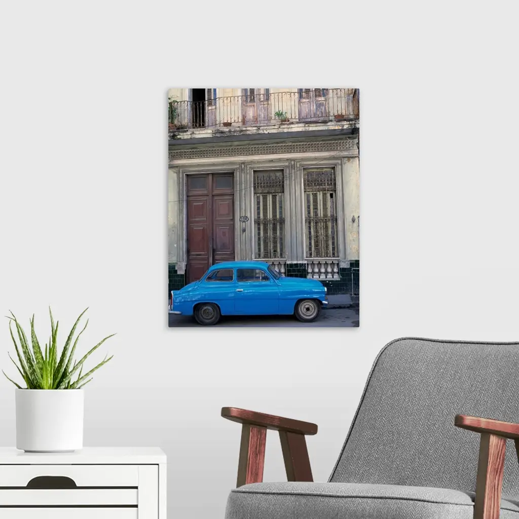 A blue car parked outside a shabby house in Old Havana, Cuba, West Indies wall art for home and office decor. Discover canvas art prints, photos, mural, big canvas art and framed wall art in GreatBigCanvas.com's varied collections.