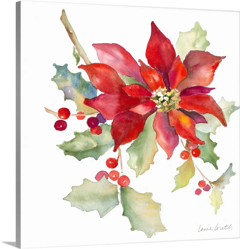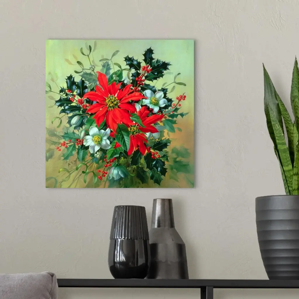 A Christmas arrangement with holly, mistletoe and other winter flowers wall art for home and office decor. Discover canvas art prints, photos, mural, big canvas art and framed wall art in GreatBigCanvas.com's varied collections.