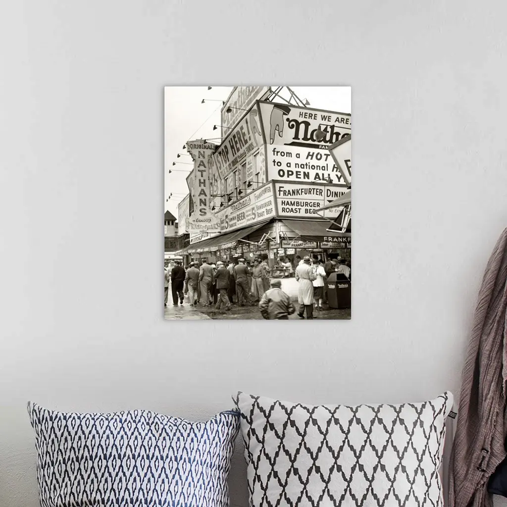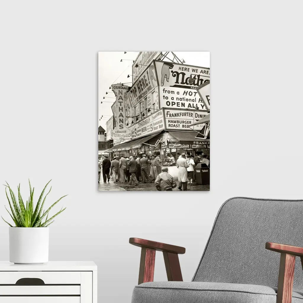A Crowd Outside Of Nathan's Famous In Coney Island, Brooklyn, 1954
