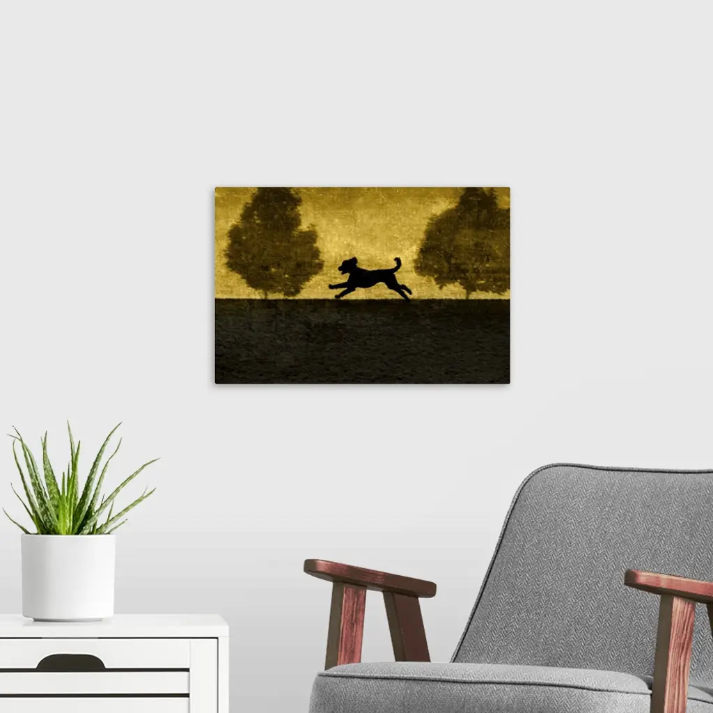 A Dog Running Between Two Small Trees