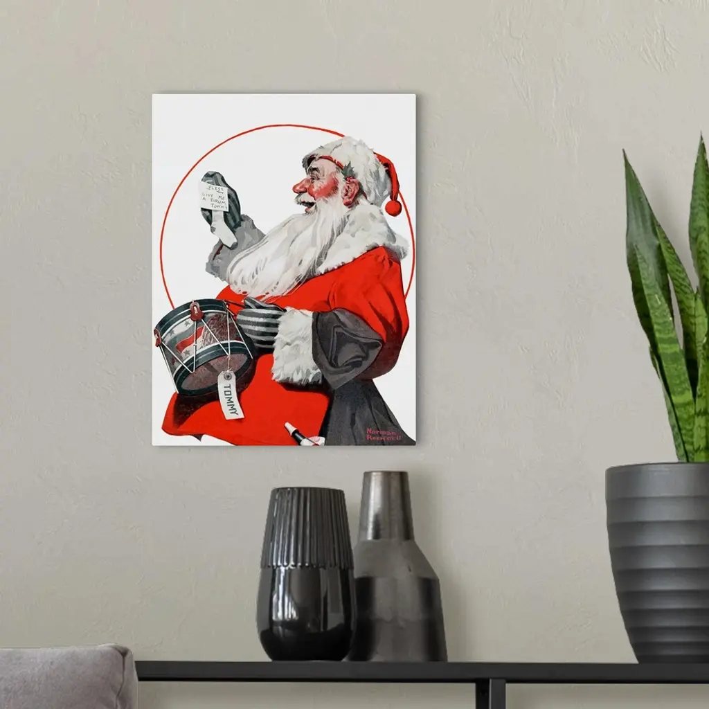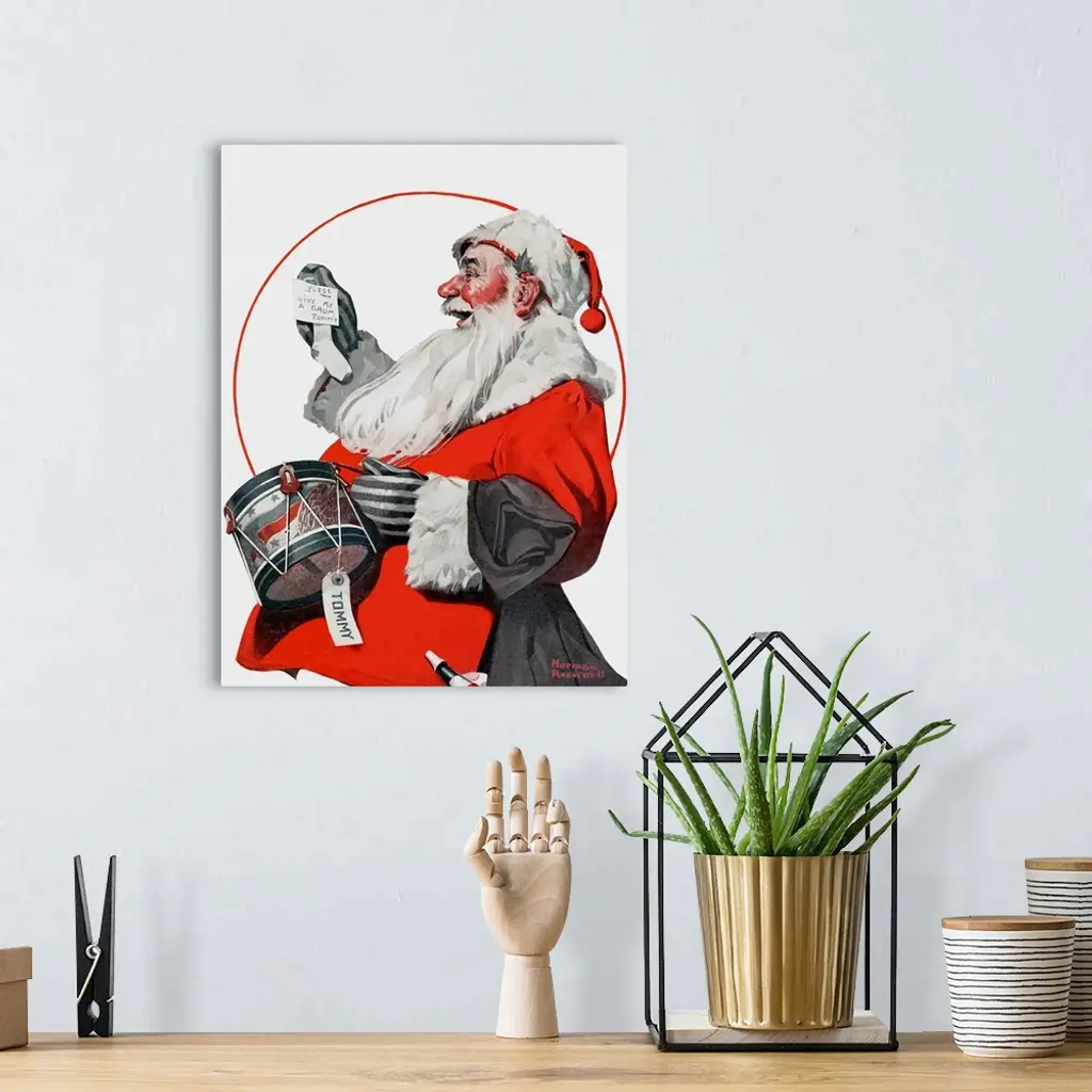 Back in the 1800's, the image of Santa Claus was not portrayed as the round, jolly, bearded man that we know today. Throughout the latter half of the 19th century, Santa morphed through a variety of different looks. Norman Rockwell played a large role in establishing Santa's look as we know it today and is well-known for depicting the man who is emblematic of the Christmas season countless times throughout his career. Alternate Title: Santa With Drum. Approved by the Norman Rockwell Family Agency