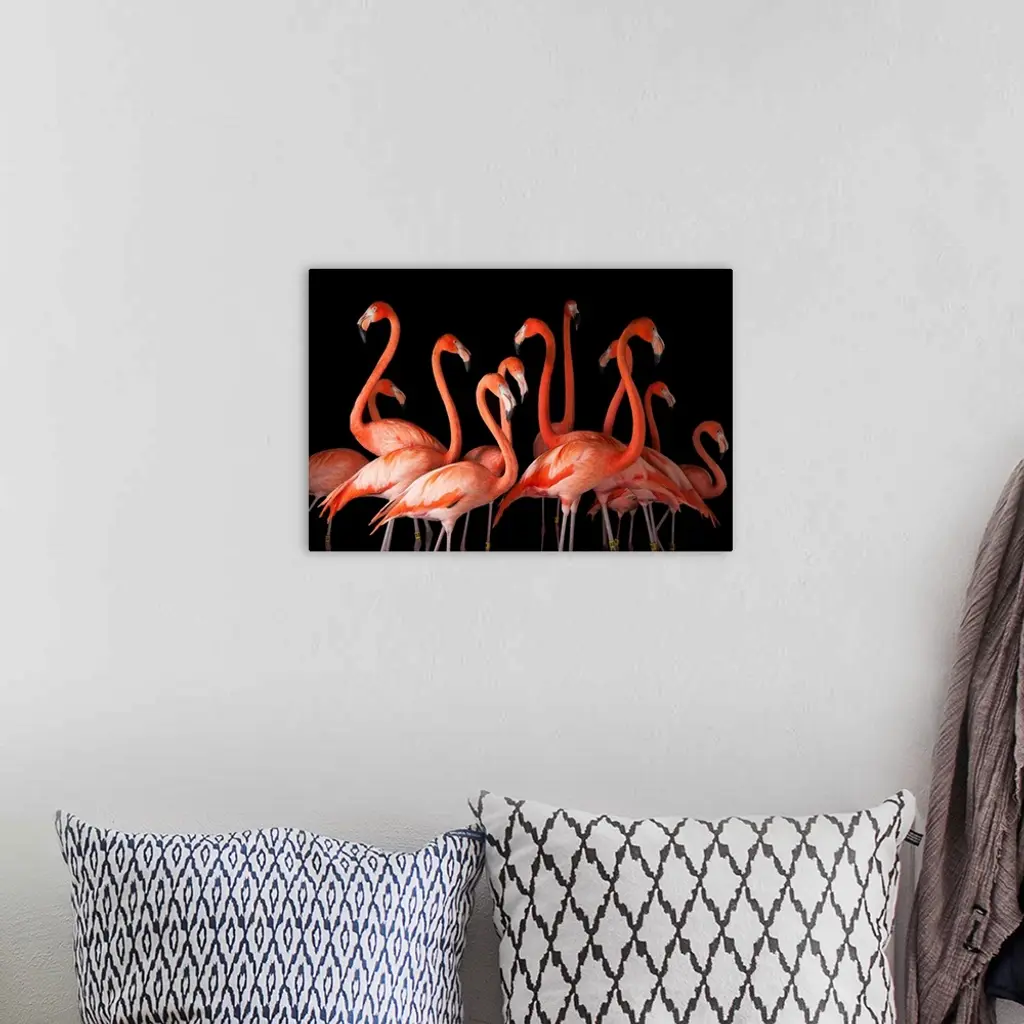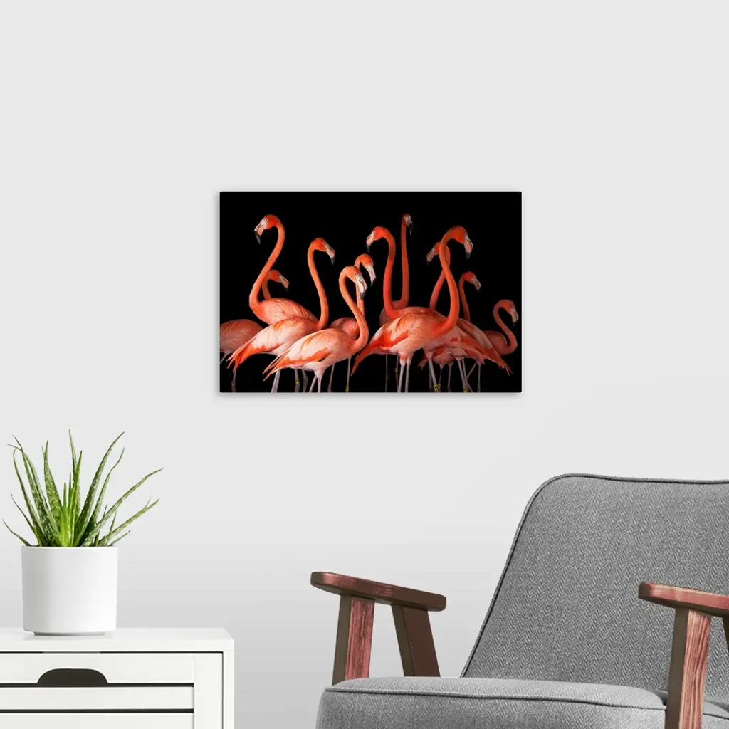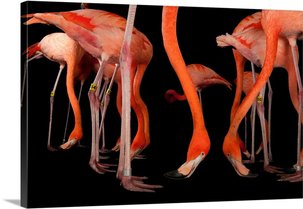 A Group Of American Flamingos, Phoenicopterus Ruber, At Lincoln Children's Zoo