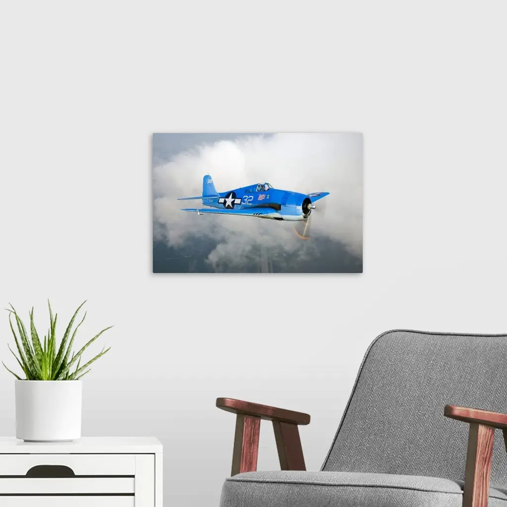 A Grumman F6f Hellcat Fighter Plane In Flight