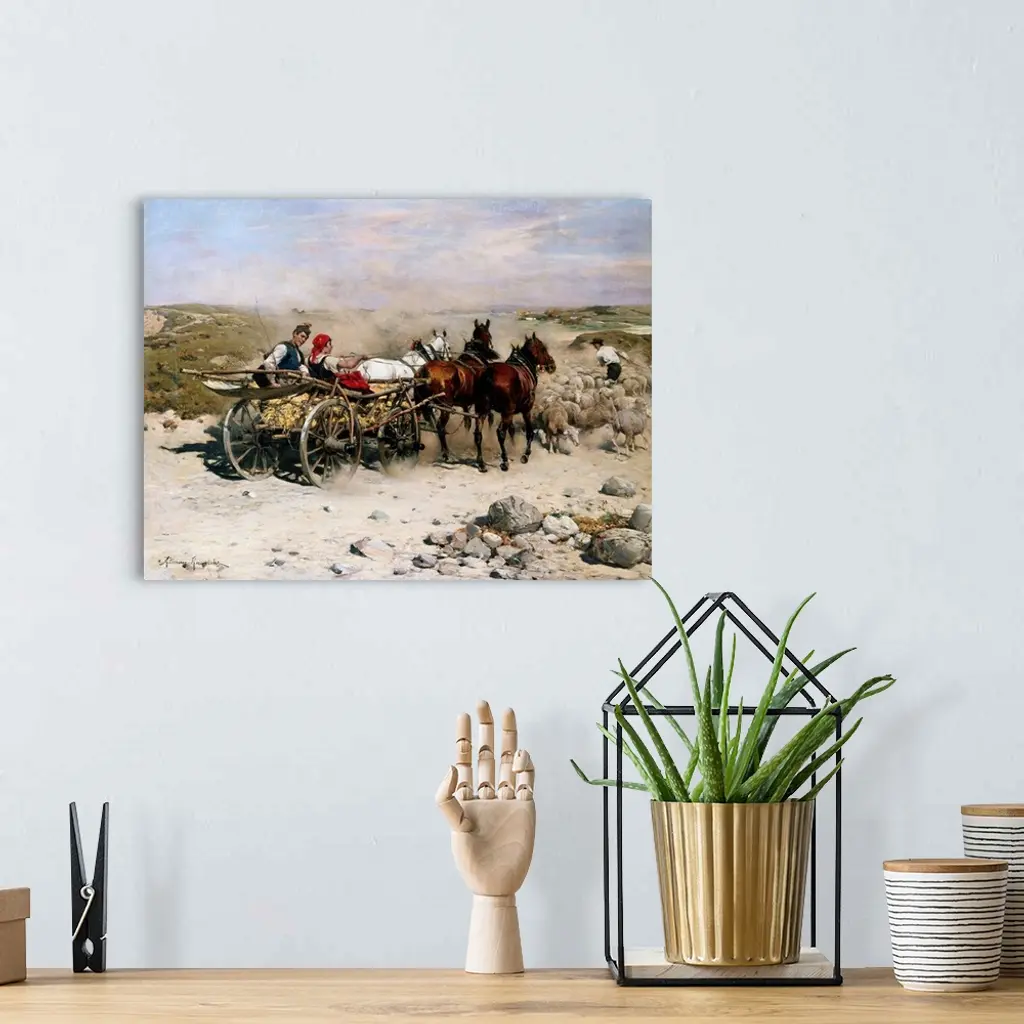A Haycart, a Shepherd and His Flock on a Country Lane wall art for home and office decor. Discover canvas art prints, photos, mural, big canvas art and framed wall art in GreatBigCanvas.com's varied collections.