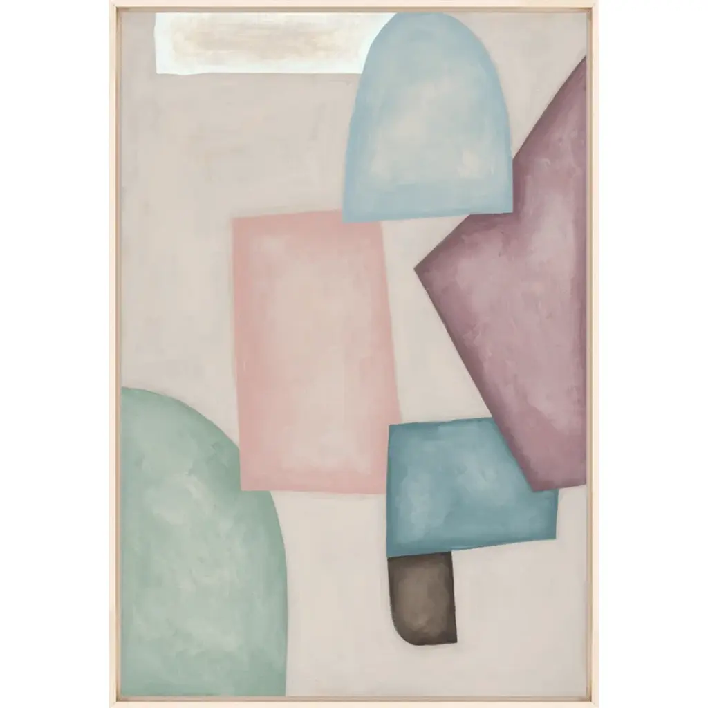 A Highlight of Fuchsia. This print is a reproduction of watercolor work by abstract painter Julia Balfour, who allows layers of pure color to construct their own shapes + find their places in this composition. It’s printed on paper in the USA, and arrives in a wooden frame with hanging hardware.