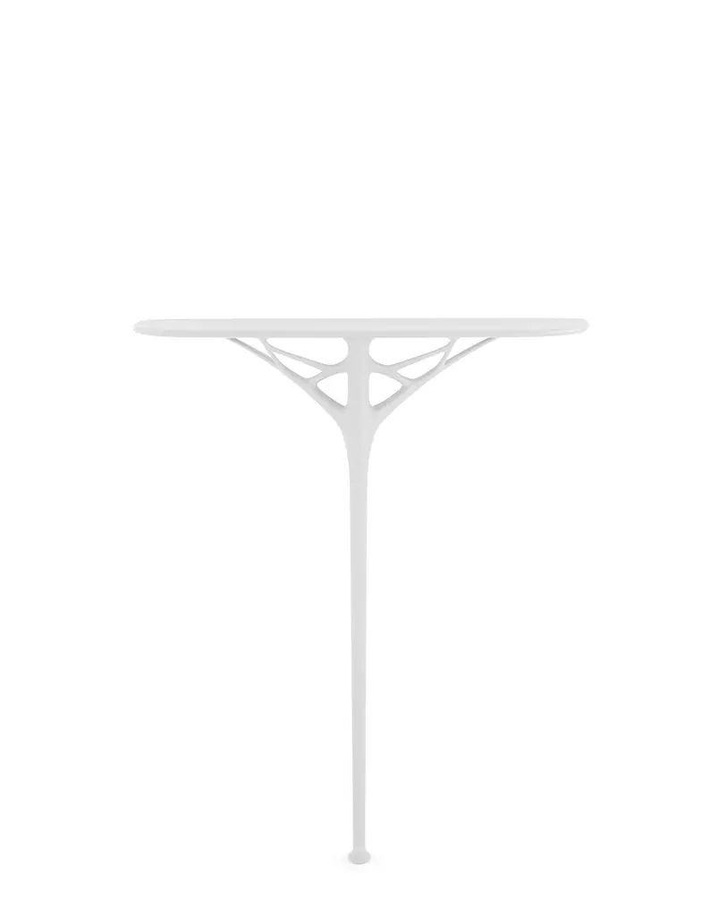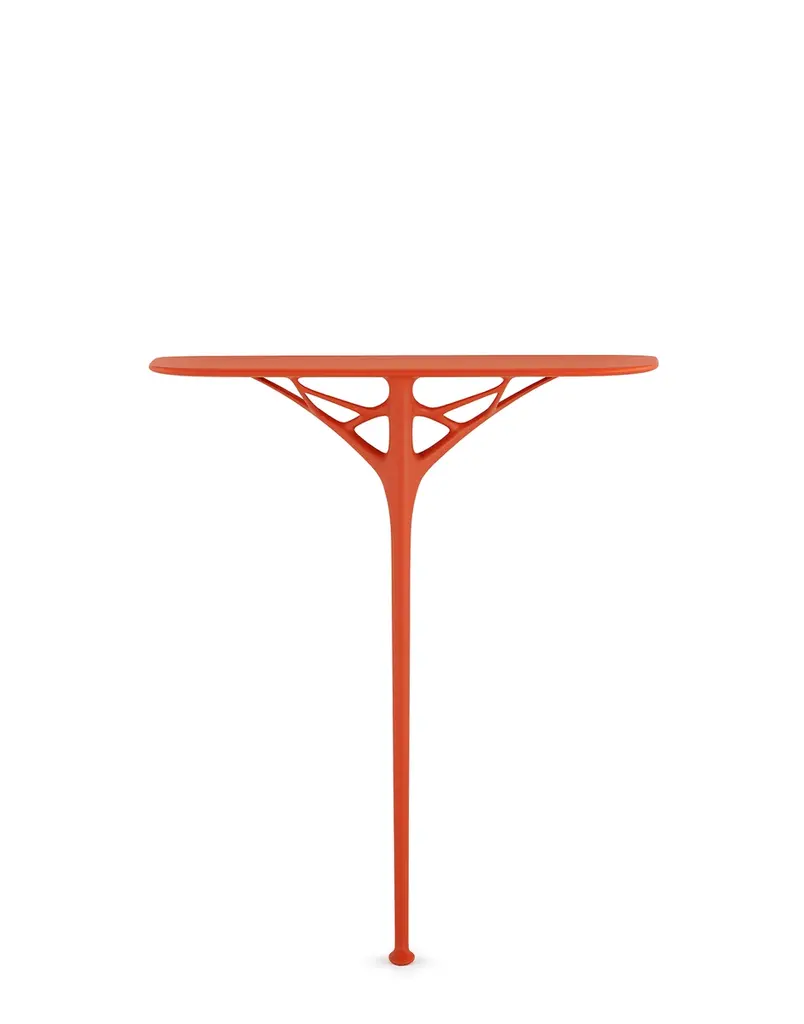 Philippe Starck continues his exploration of new and sustainable materials, in search of the pure and basic form of the graphic design element. A.I. CONSOLE is proposed as an idea of elegance of artificial intelligence in search of the minimum, the ground zero of style. The console that takes up the already recognisable lines that characterise the family is a unique piece of furniture that leaves an uncluttered yet characterful mark on entrances and hallways thanks to its styling with a central leg. It is ideal for both residential and contract environments, with several colour variations: white, grey, green, terracotta and black.The added value of A.I. lies in the fact that it is the first product family conceived by Artificial Intelligence in response to input received from the designer (Philippe Starck) and the know-how of the company (Kartell). Specifically, creative thinking, company know-how and artificial intelligence have merged to develop a chair model based on an algorithm that respects the original brief of the designer and the company a comfortable product with the structural strength and solidity required while upholding one of Kartell’s main values: to be an injection-moulded industrial product of outstanding aesthetic quality.