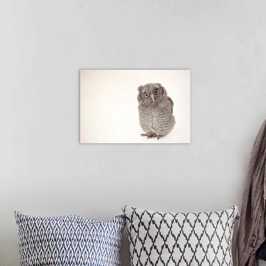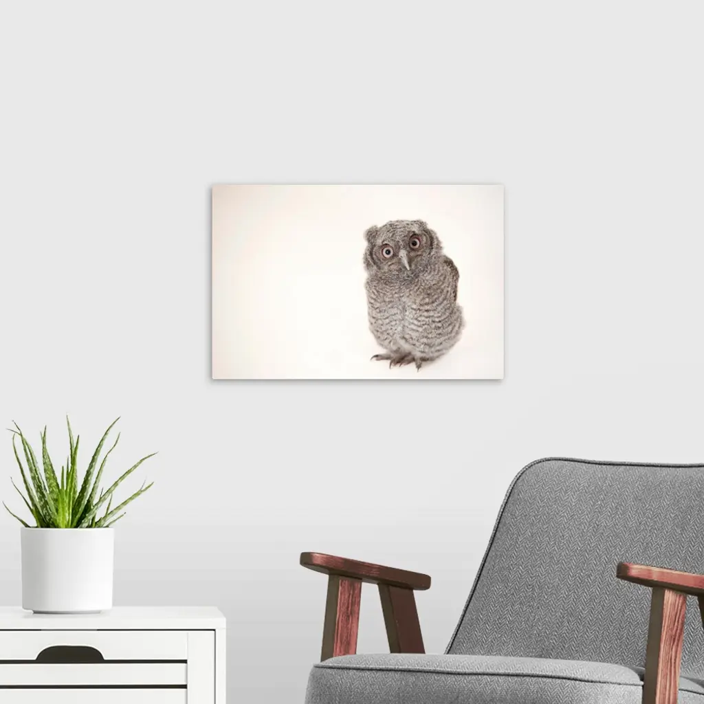 A juvenile Eastern screech owl, Megascops asio, at the Raptor Recovery Center.