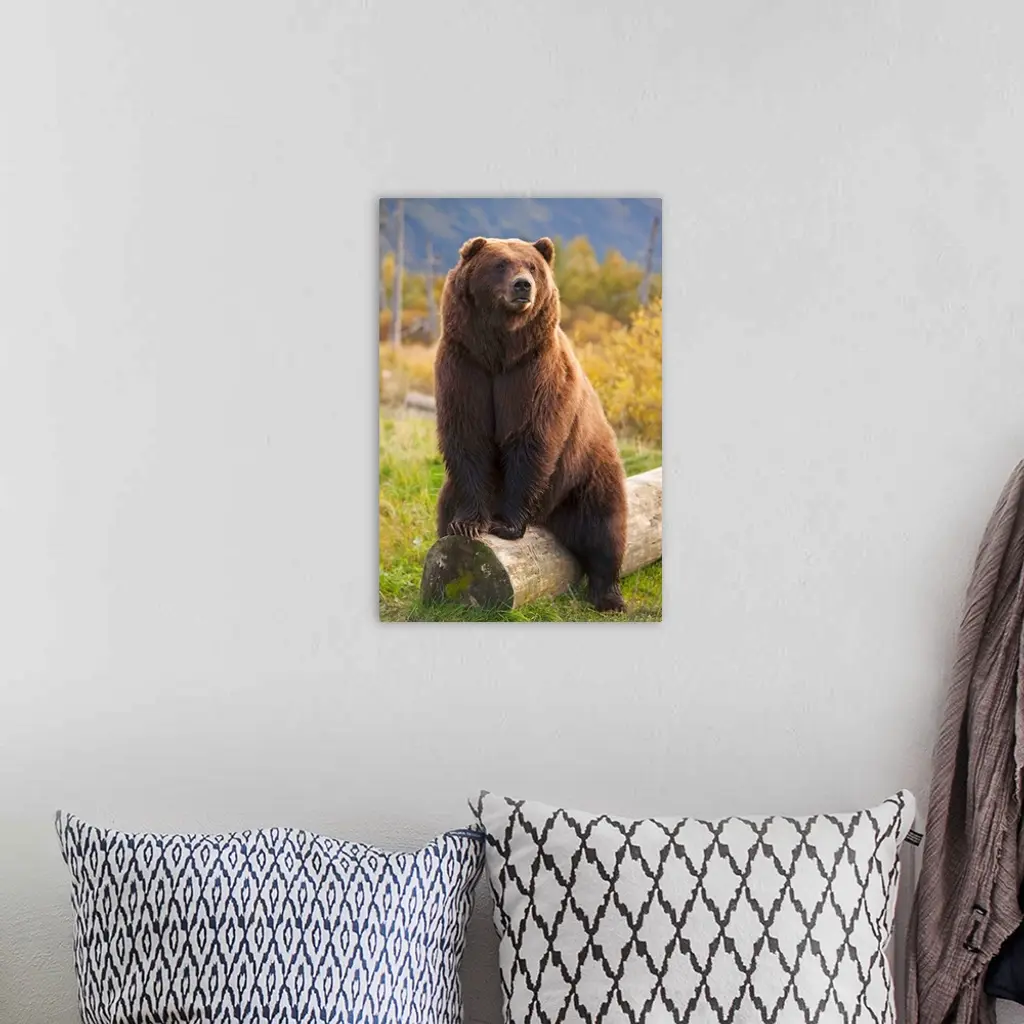 A Large Brown Bear Sits On A Log At The Alaska Wildlife Conservation Center wall art for home and office decor. Discover canvas art prints, photos, mural, big canvas art and framed wall art in GreatBigCanvas.com's varied collections.