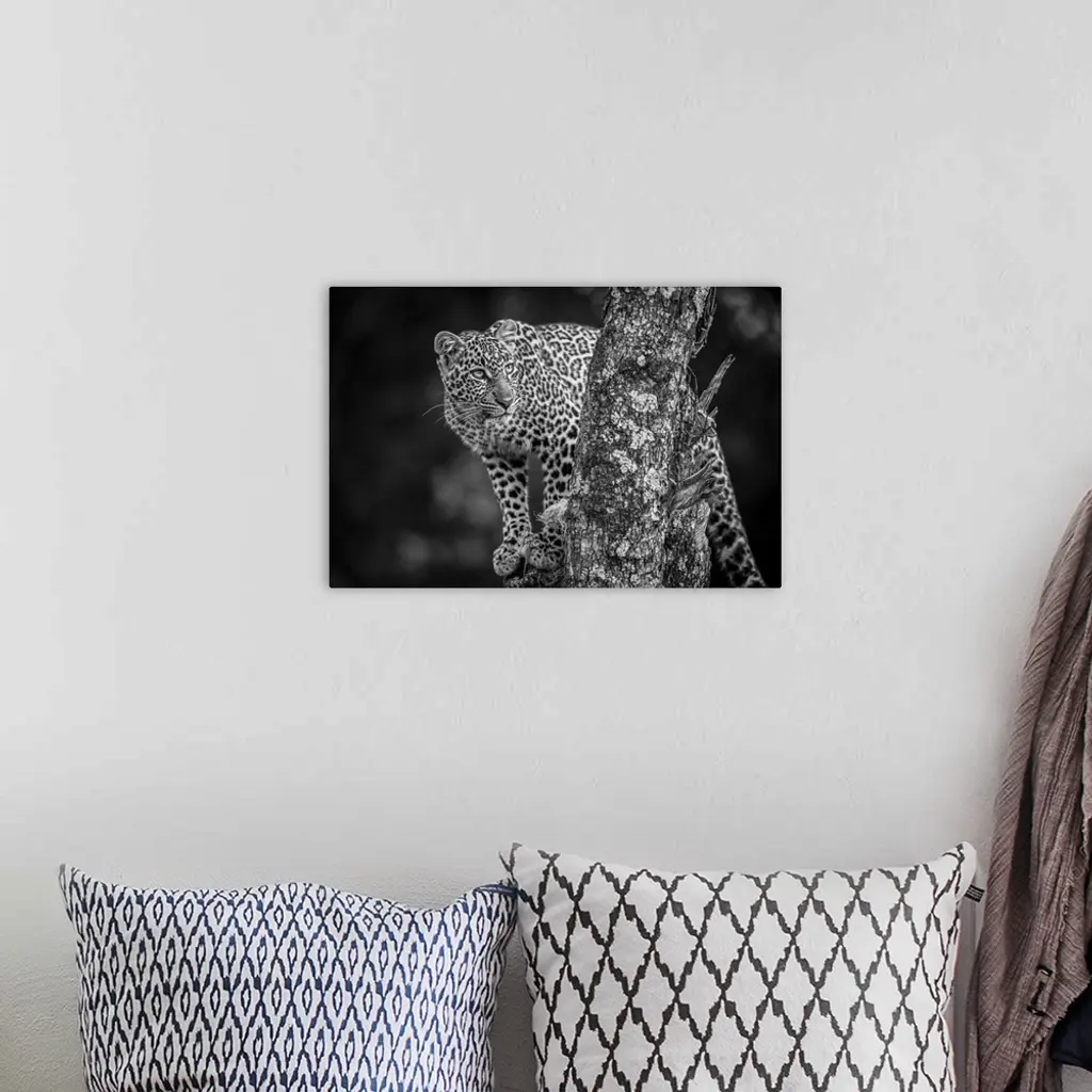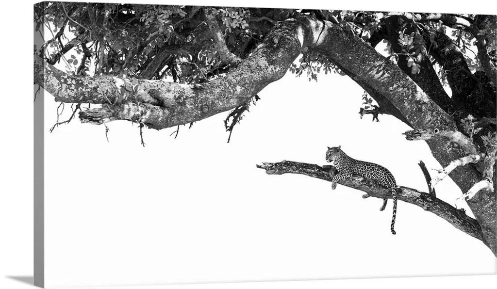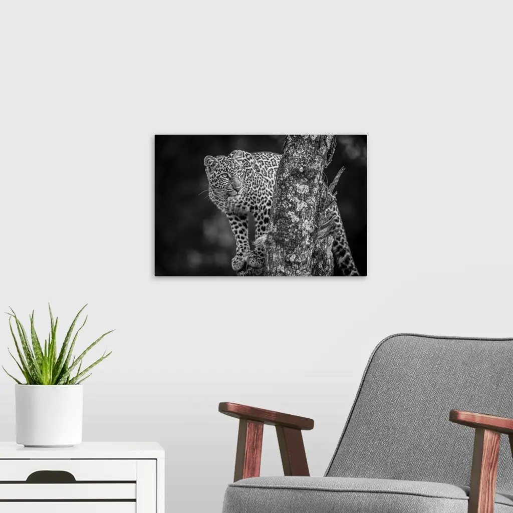 A Leopard Stands In A Tree That Is Covered In Lichen, Masai Mara, Kenya