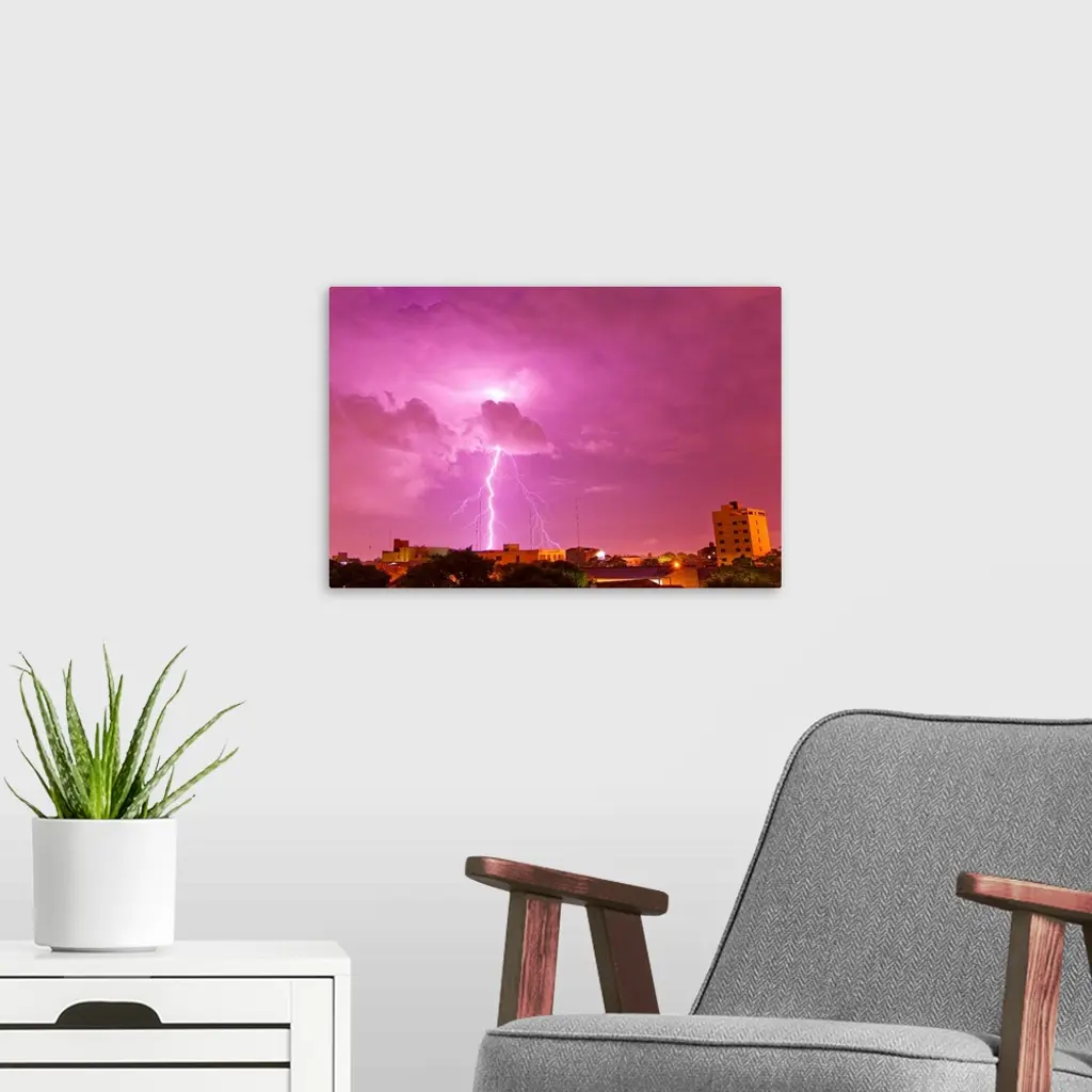 A Lightning Bolt Striking Down In The City Of Asuncion, Paraguay