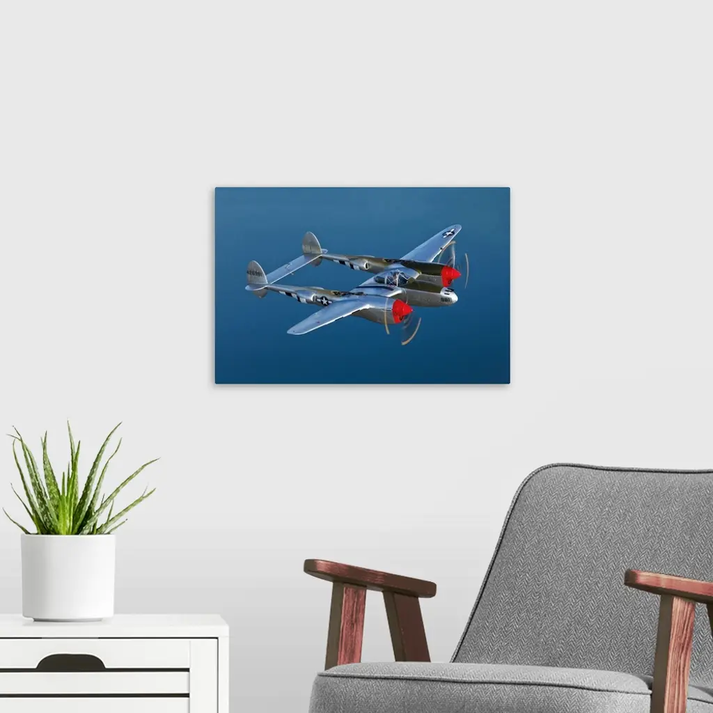 A Lockheed P 38 Lightning Fighter Aircraft In Flight