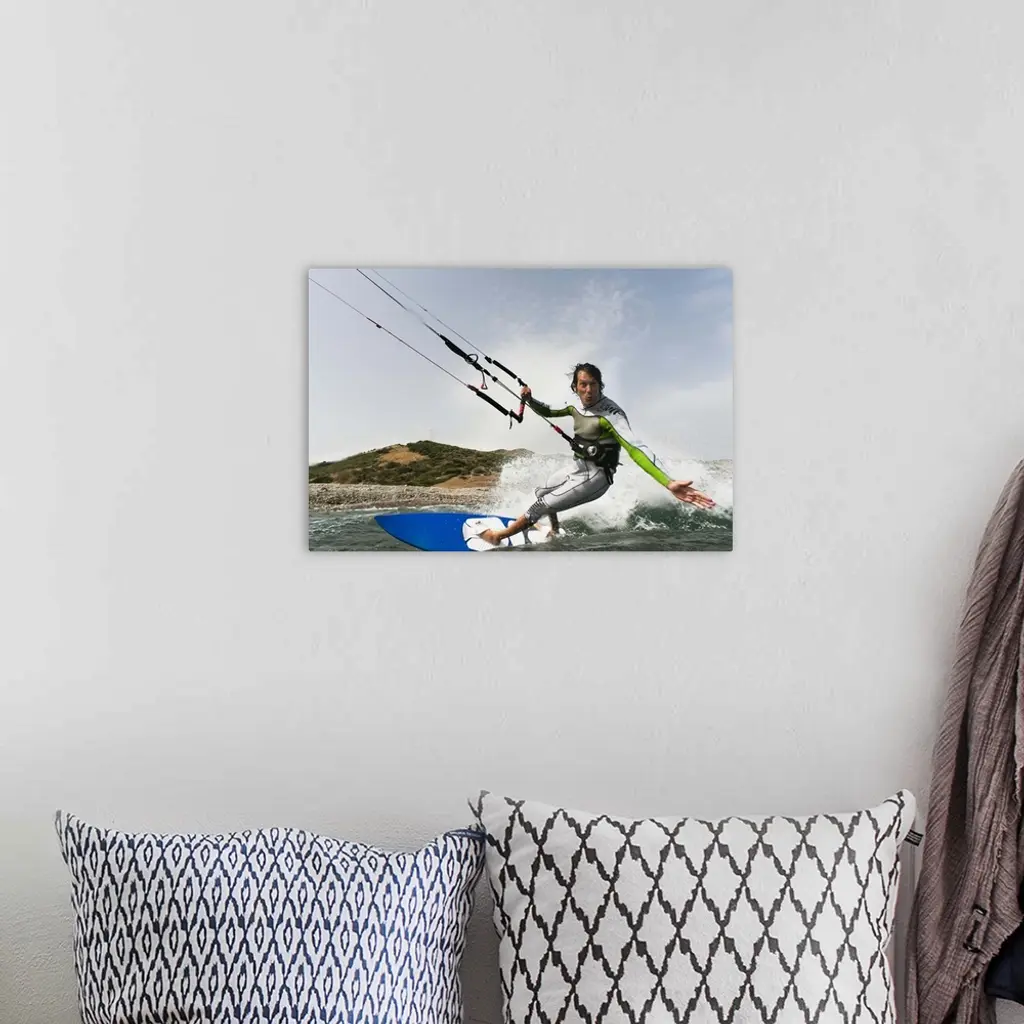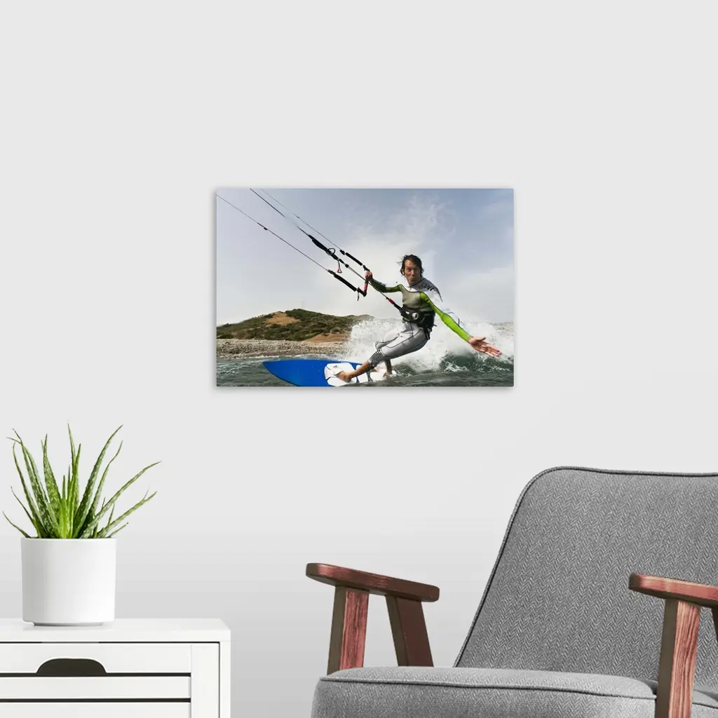 A Man Kite Surfing Off The Coast Of Parque Natural Del Estrecho