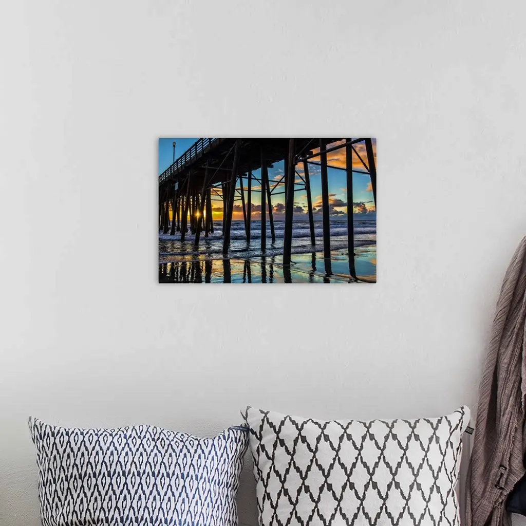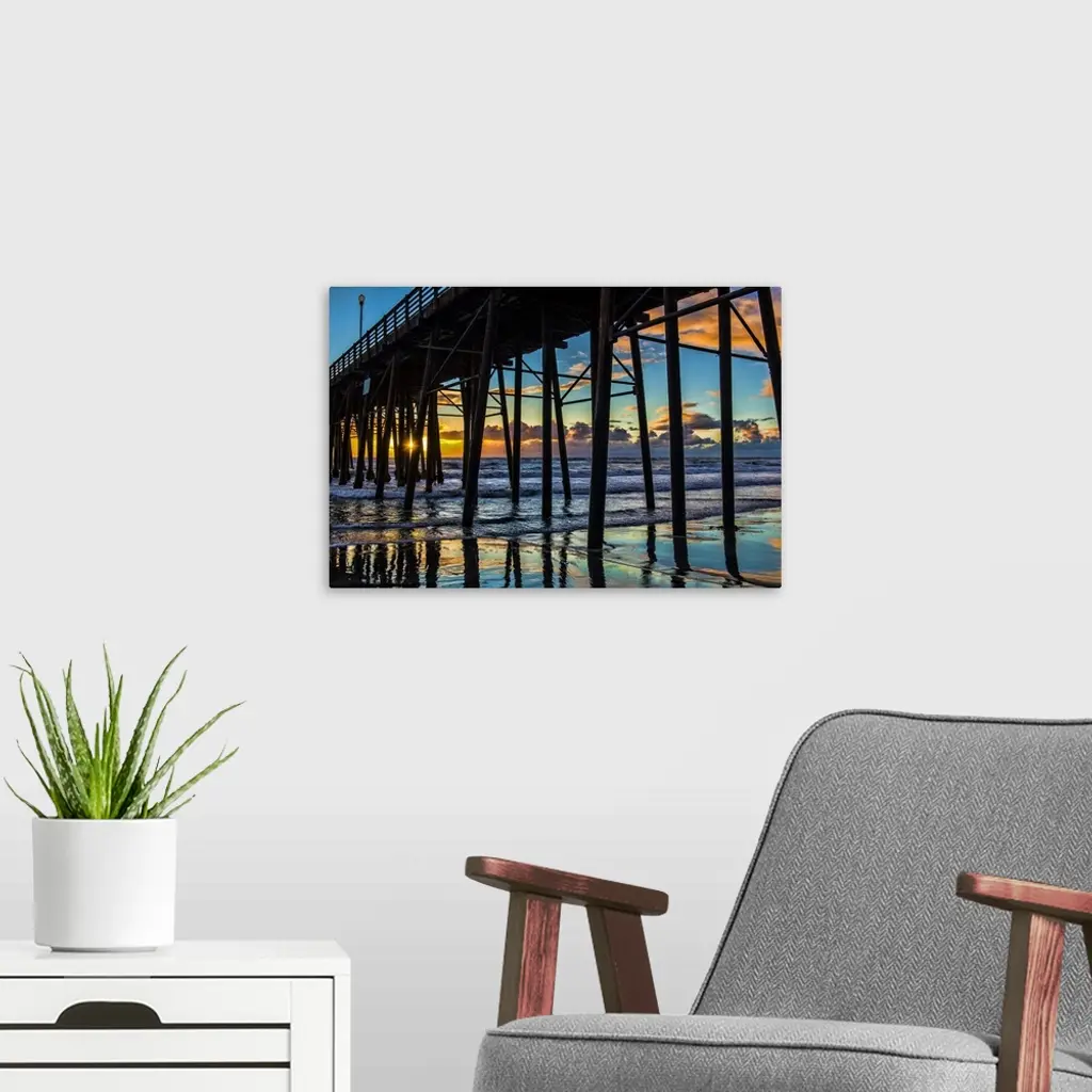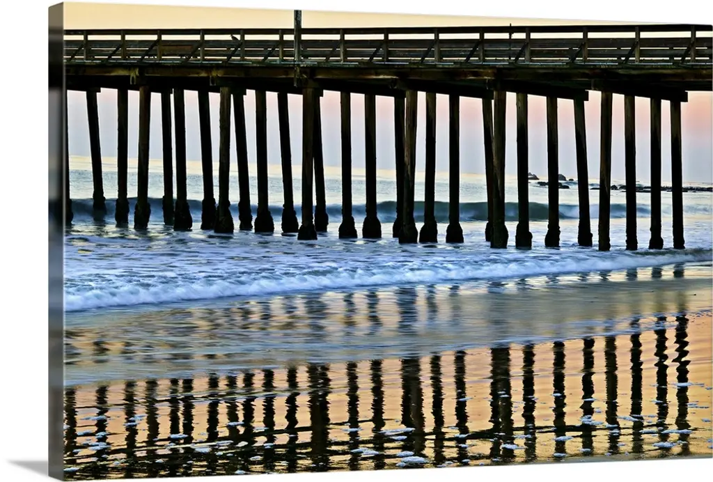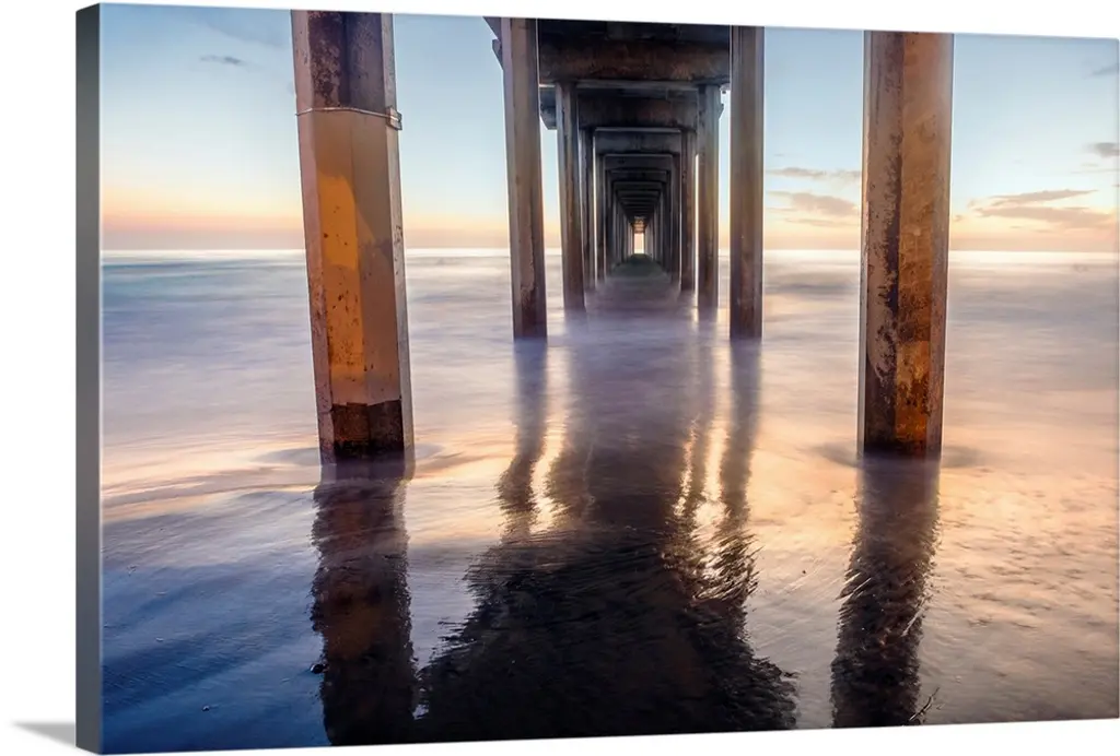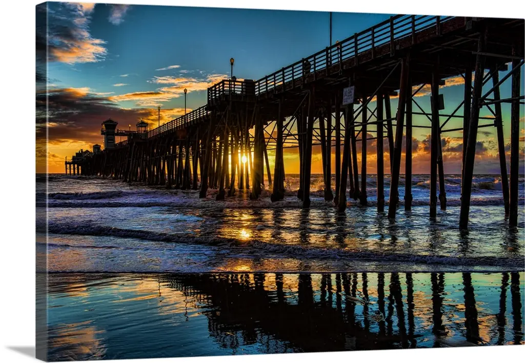 The sun peaks through the pilons of the Oceanside Pier. Oceanside is 35 miles North of San Diego, California, USA