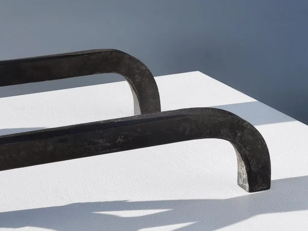 A Modernist Brutalist Wrought Iron Pair Of Andirons, France 1950