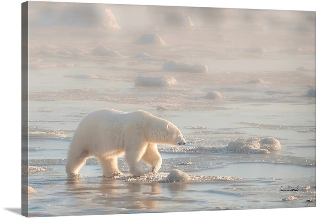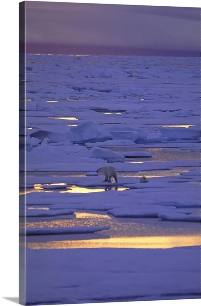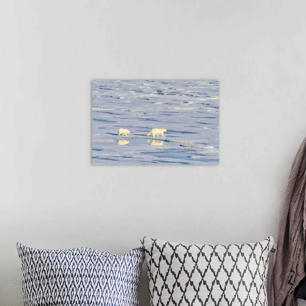 A Mother And Cub Polar Bear Traveling In The Svalbard Archipelago, Norway