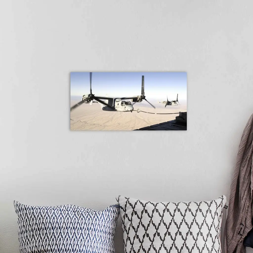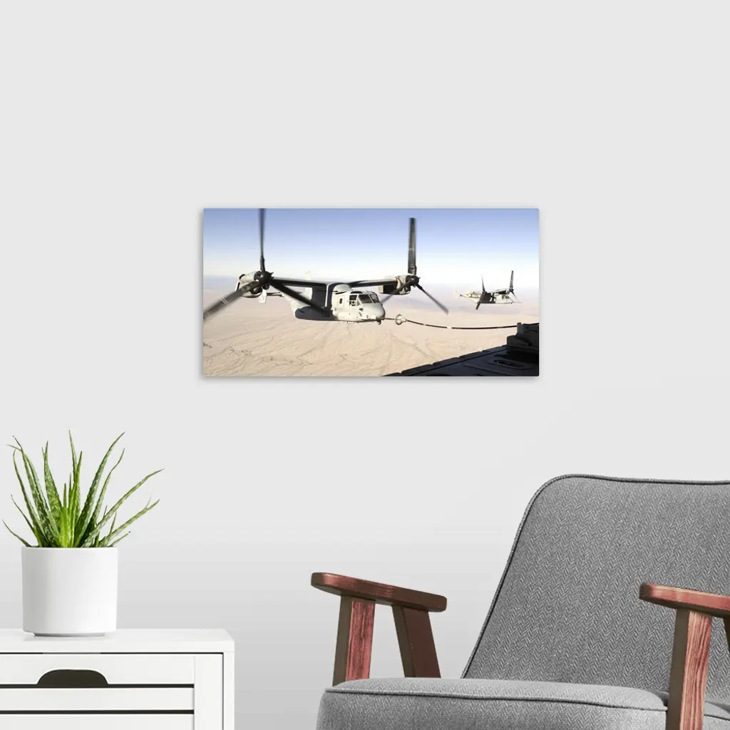 A MV22 Osprey refuels midflight while another waits its turn wall art for home and office decor. Discover canvas art prints, photos, mural, big canvas art and framed wall art in GreatBigCanvas.com's varied collections.
