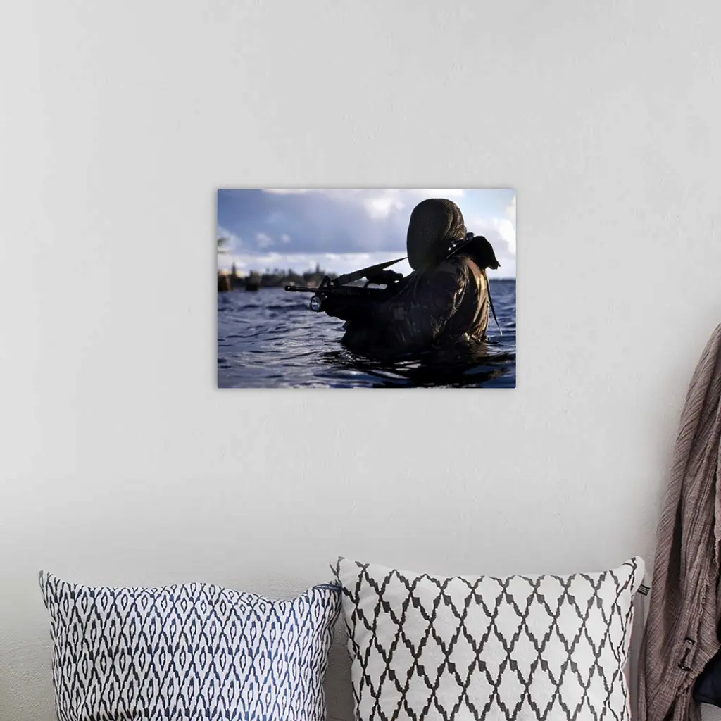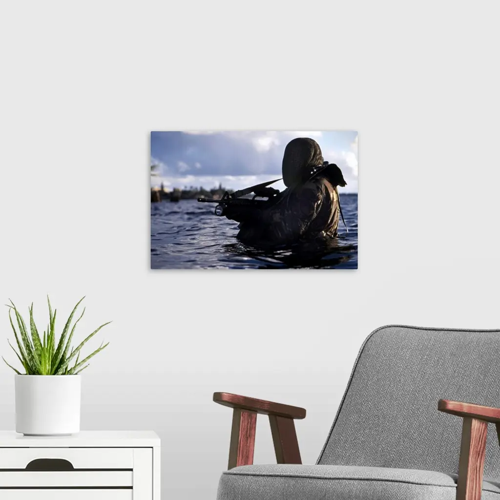 A Navy SEAL emerges from underwater during a training exercise wall art for home and office decor. Discover canvas art prints, photos, mural, big canvas art and framed wall art in GreatBigCanvas.com's varied collections.