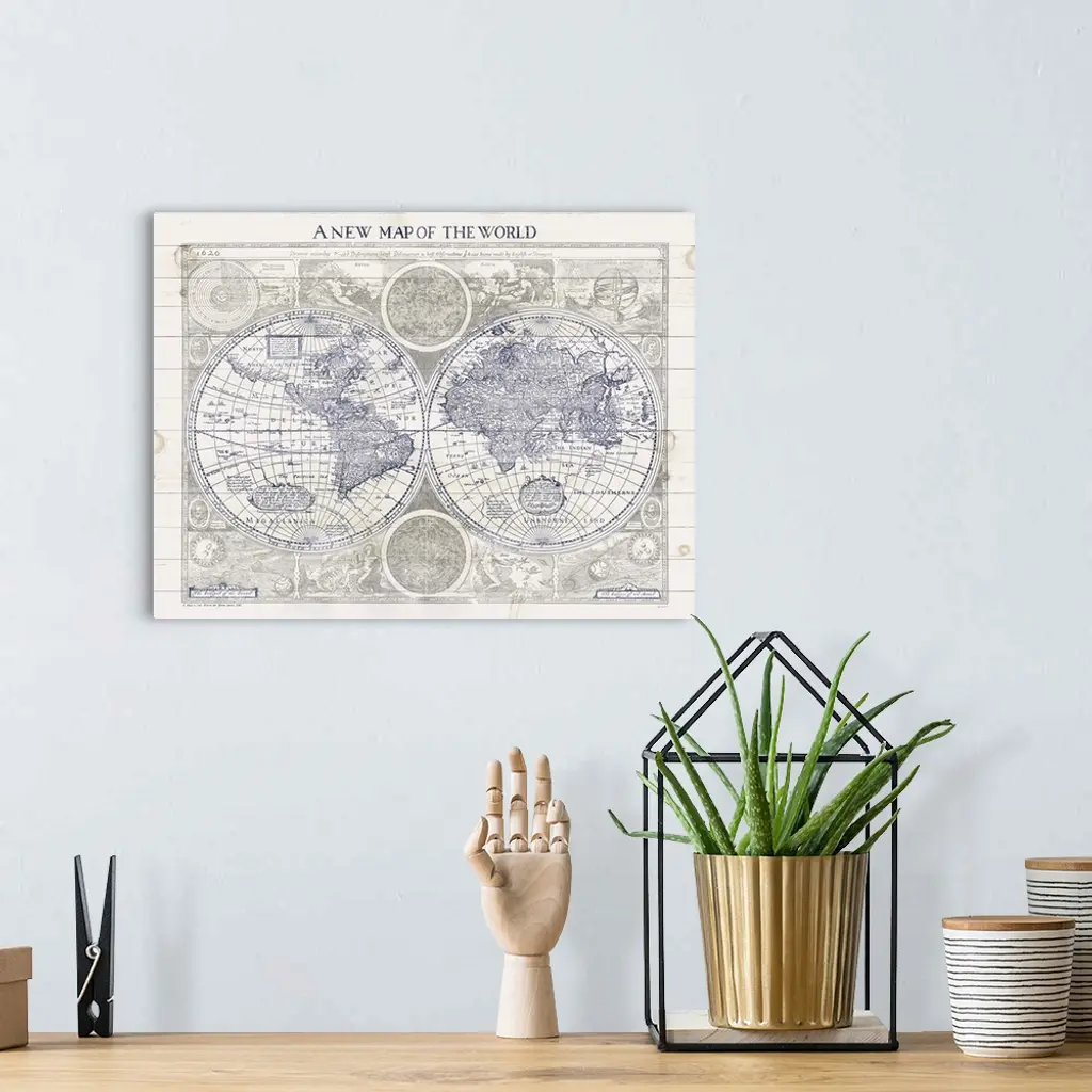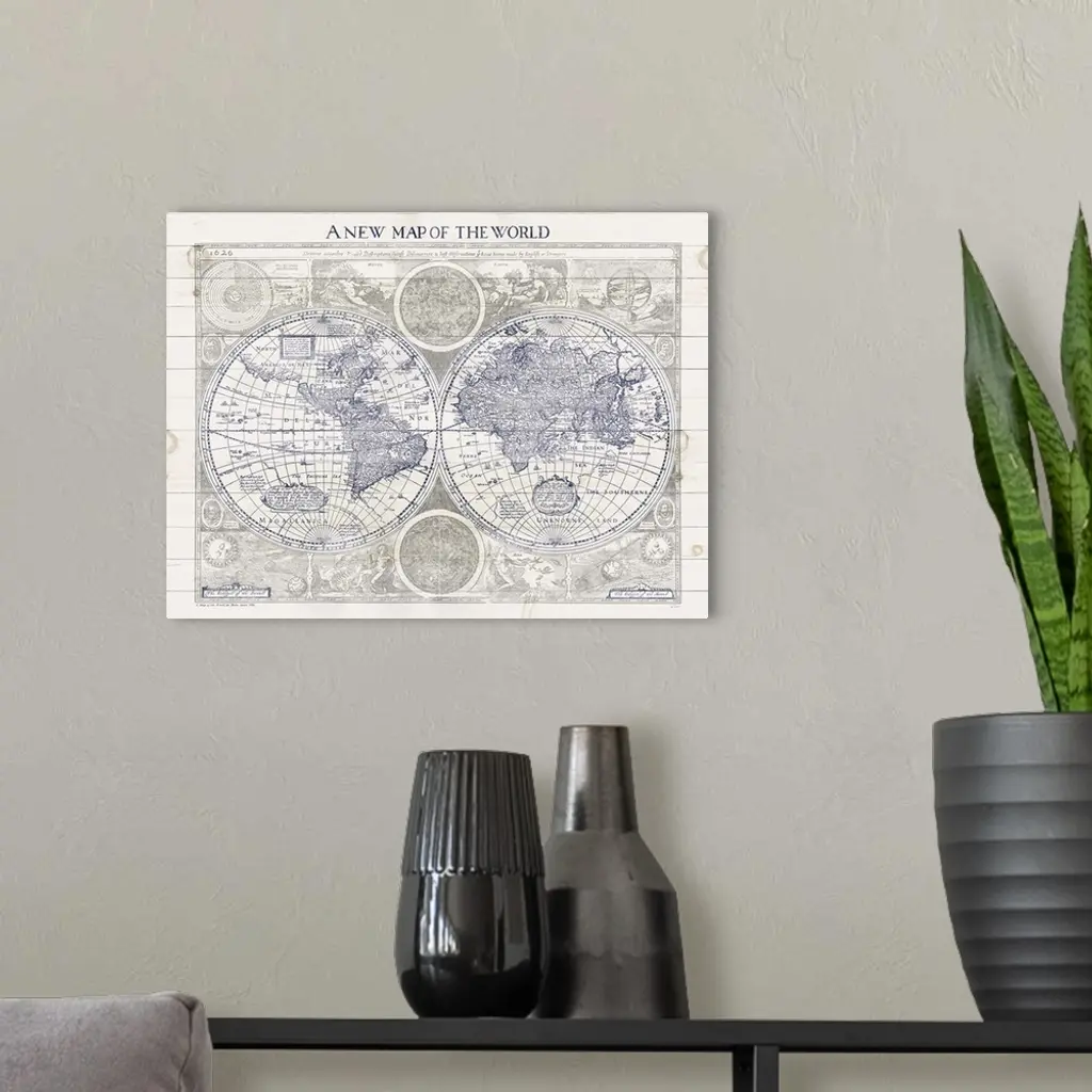 A New Map of the World wall art for home and office decor. Discover canvas art prints, photos, mural, big canvas art and framed wall art in GreatBigCanvas.com's varied collections.